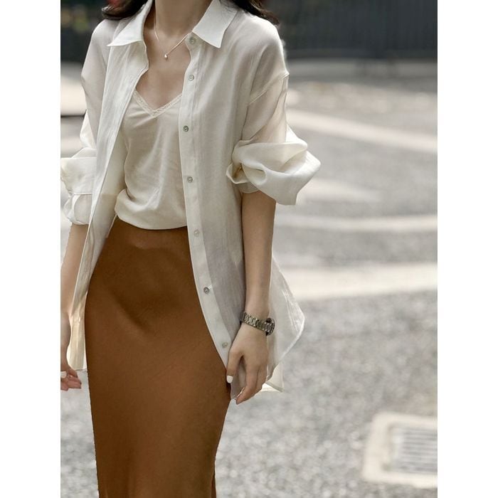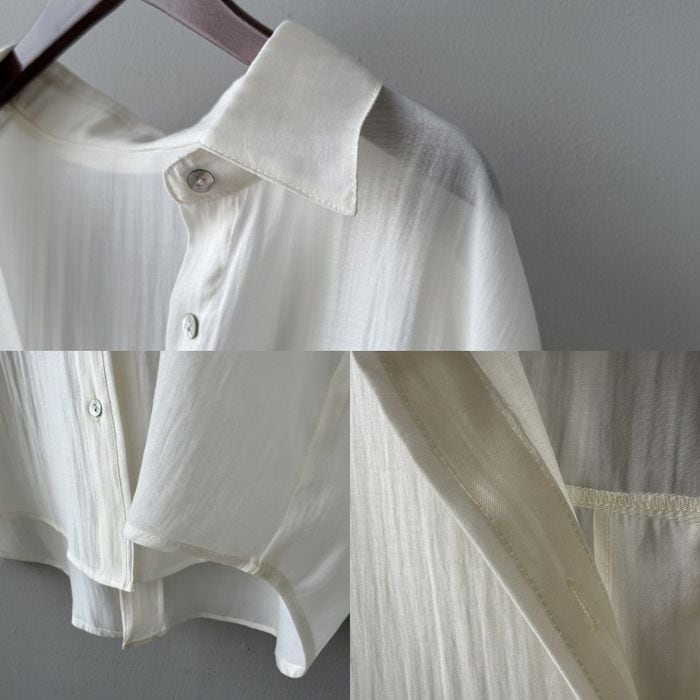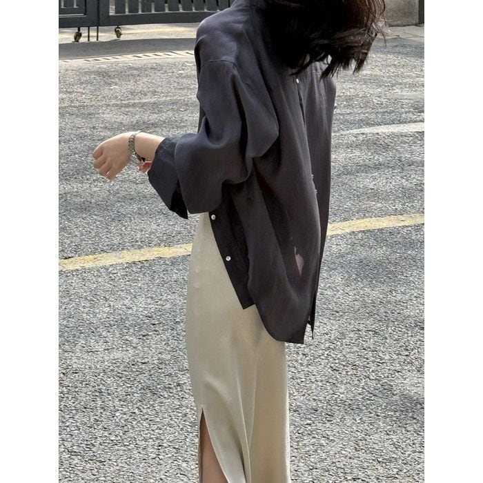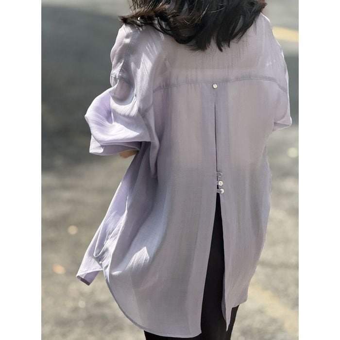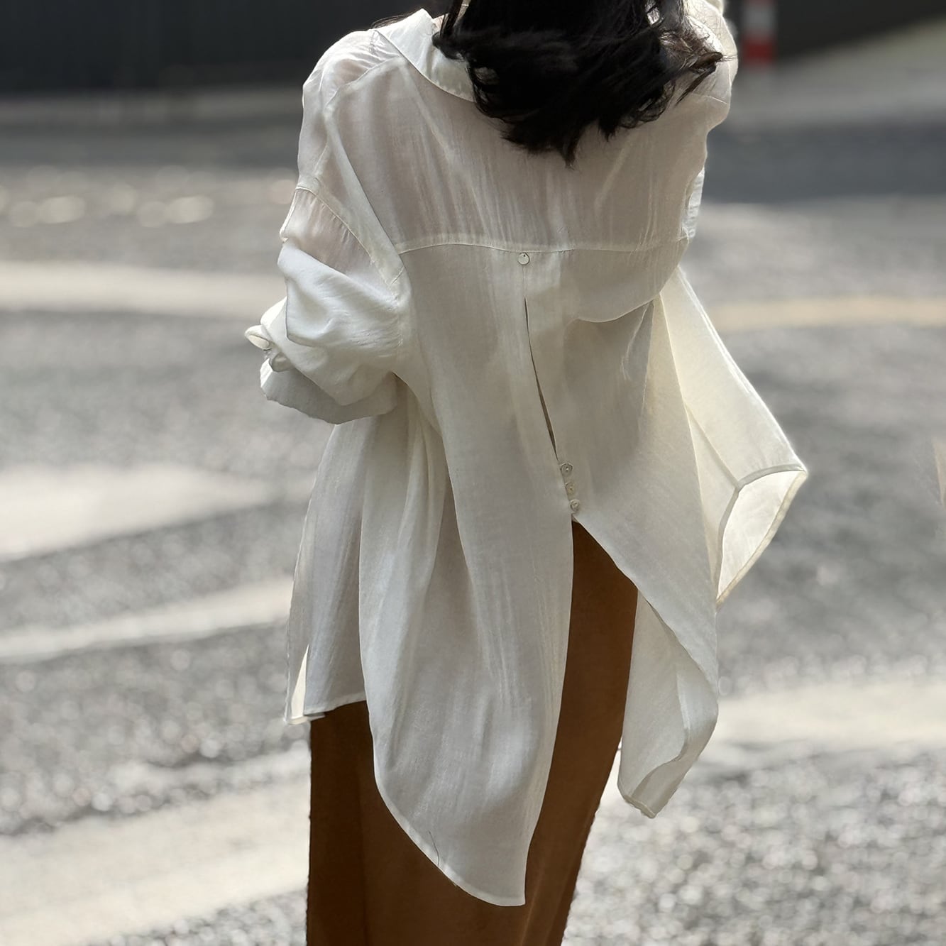 バックスリットで後ろも抜かりないシアーシャツ。 インナーにノースリーブのアイテムを合わせて抜け感のあるコーデに。 【サイズ】 M 肩幅:50cm 胸囲:116cm 着丈:71/74cm 袖丈:55cm L 肩幅:51cm 胸囲:120cm 着丈:72/75cm 袖丈:56cm ※海外製品につき1-3cm程度誤差がある場合がございます。 【素材】 リヨセル ポリエステル 【カラー】 オフホワイト ベージュ ブルー パープル グレー ■abeilleでは、多数アイテムを取り揃えております。 下記URLよりぜひチェックしてみて下さい♪ https://www.abeille.shop/ ■今週の人気ランキングはこちら♪ https://www.abeille.shop/categories/3518518 ****ご購入前に必ずお読みください**** https://www.abeille.shop/about 【お届けについて】 こちらの商品は海外店舗より直接発送となる為、 ご入金から「10日~3週間前後」で発送致します。 ■注意事項 ・タイミングによっては 商品在庫切れにより 注文キャンセルとさせていただく恐れもございますので、予めご了承くださいませ。 ・こちらは輸入品となります。日本製とは検品基準が異なる為、 新品未使用品でもごくわずかな汚れや ほつれがある場合もございます。 ・仕入れ工場を変えることがあるため、記載サイズと若干異なる場合がございます。 ・商品の色味は、お手持ちのスマートフォンの画面によって実物と若干異なる場合がございます。 ・イメージ違いやサイズ交換等、お客さまご都合による交換、返品は対応出来かねます。 【お支払方法】 ・クレジットカード決済 (VISA/Master/JCB/AMERICAN EXPRESS) ・キャリア決済 (docomo/au/SoftBank/Y!mobile/UQmobile) ・銀行振込 (三井住友銀行) ・コンビニ決済・Pay-easy ・後払い決済 *ーー*ーー*ーー*ーー*ーー*ーー*ーー* 【abeille】Instagram https://www.instagram.com/abeille_closets/