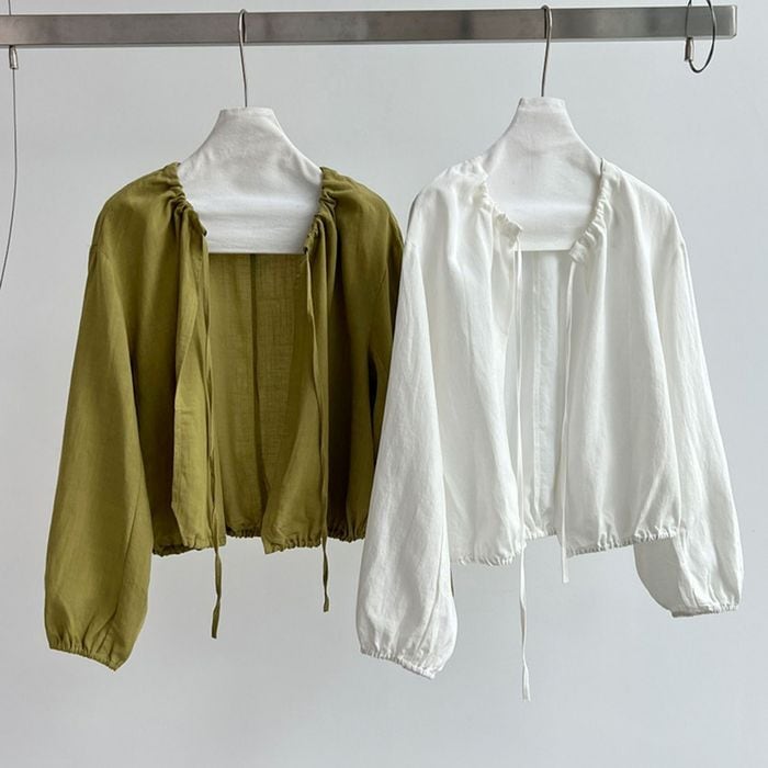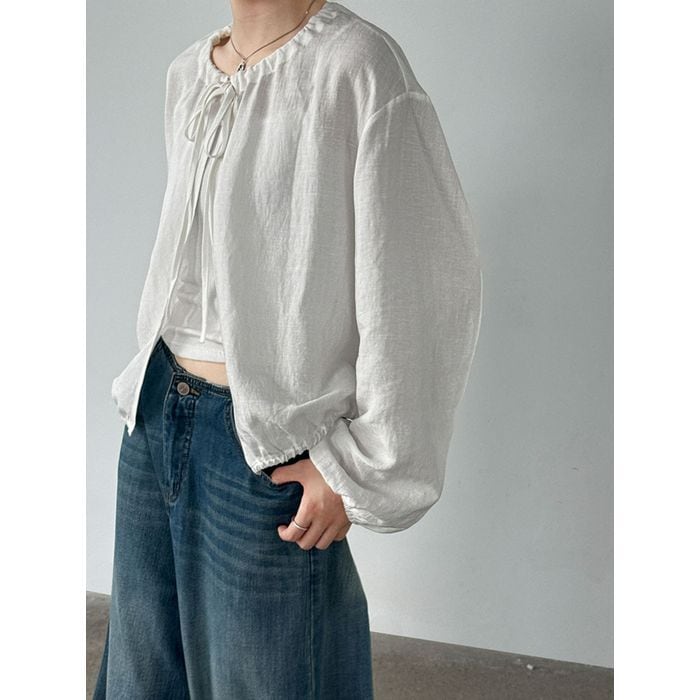 フロントのリボンで様々なスタイリングが楽しめるトップス。