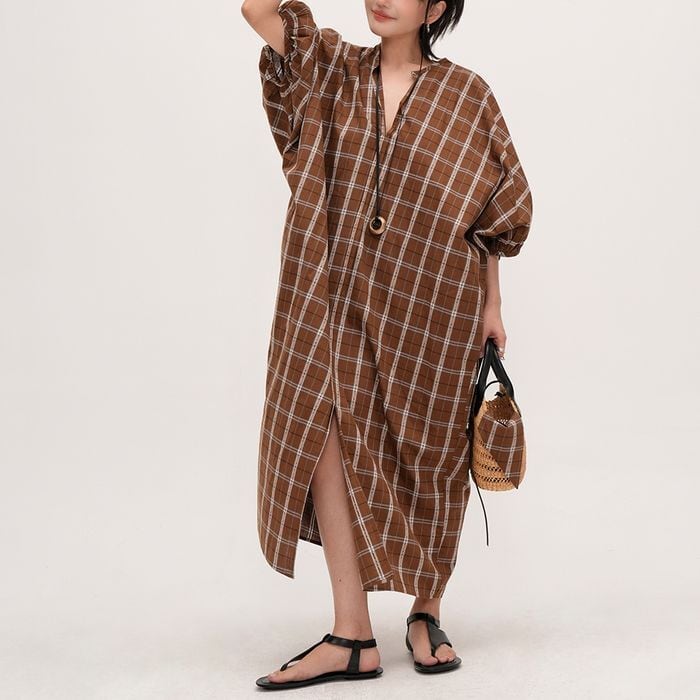 ビッグシルエットなチェック柄シャツワンピース。