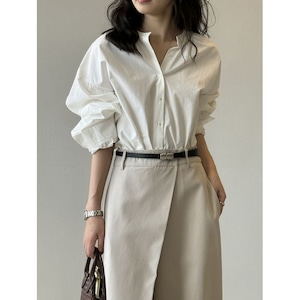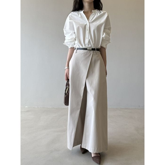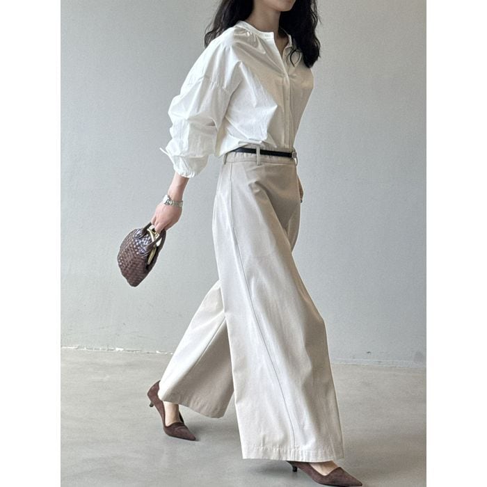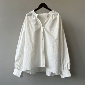 シンプルで合わせやすいバンドカラーシャツ。