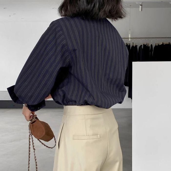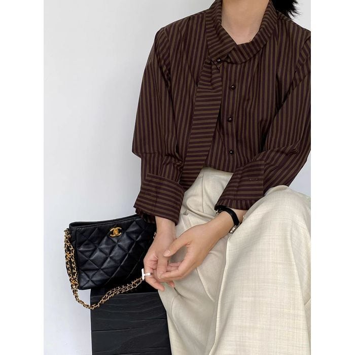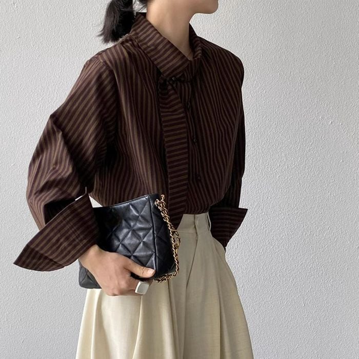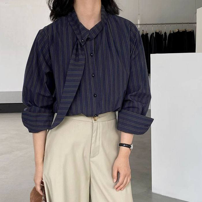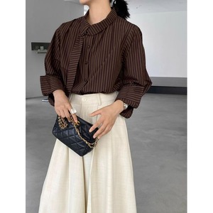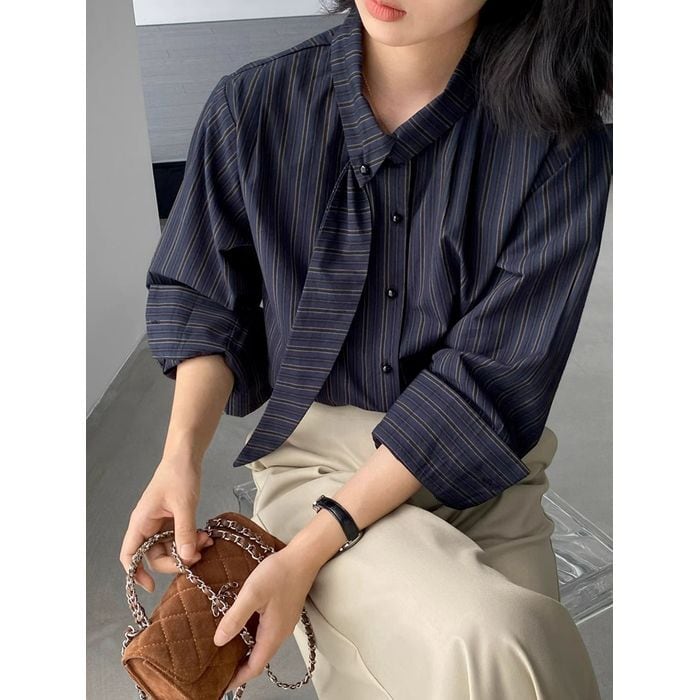ボウタイで表情豊かなストライプ柄のブラウス。