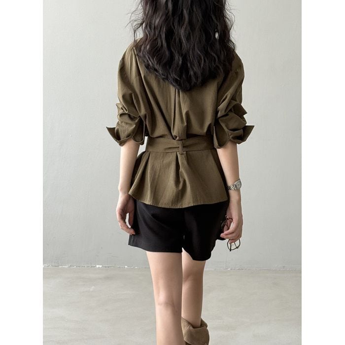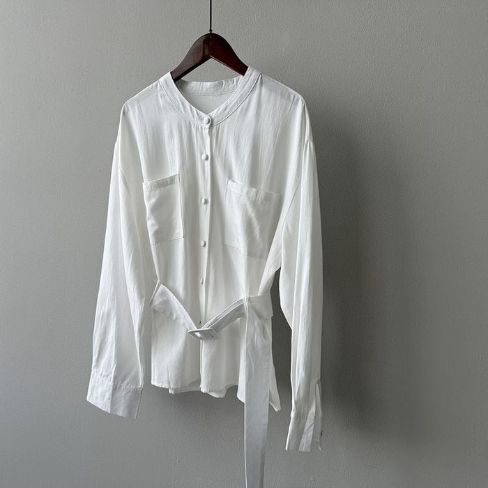 waist tie collarless shirt 13892