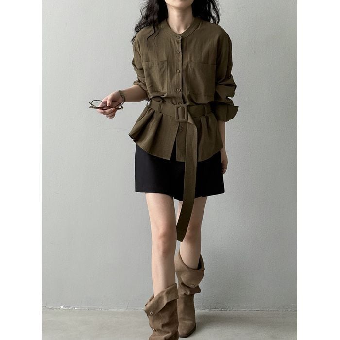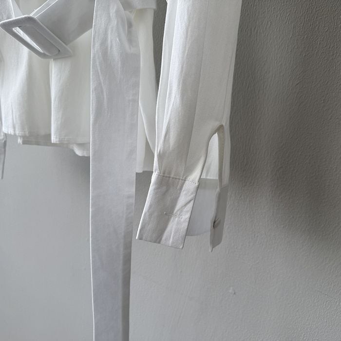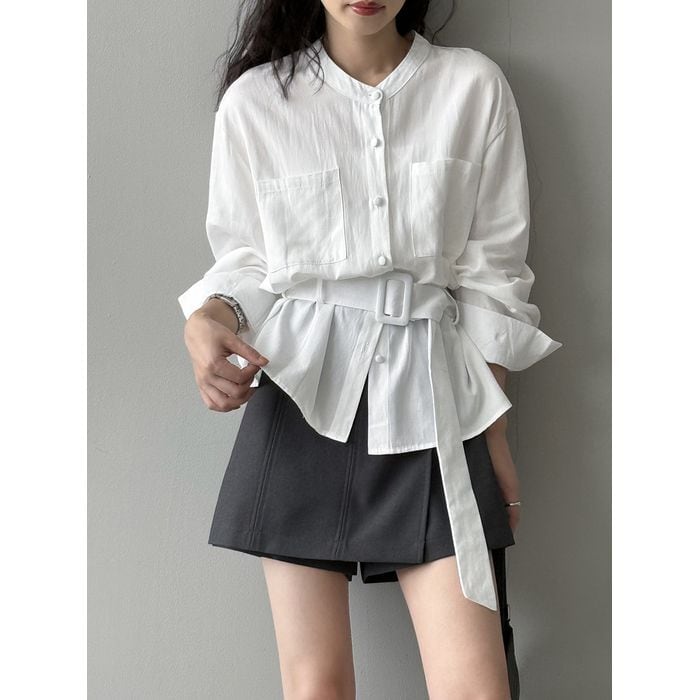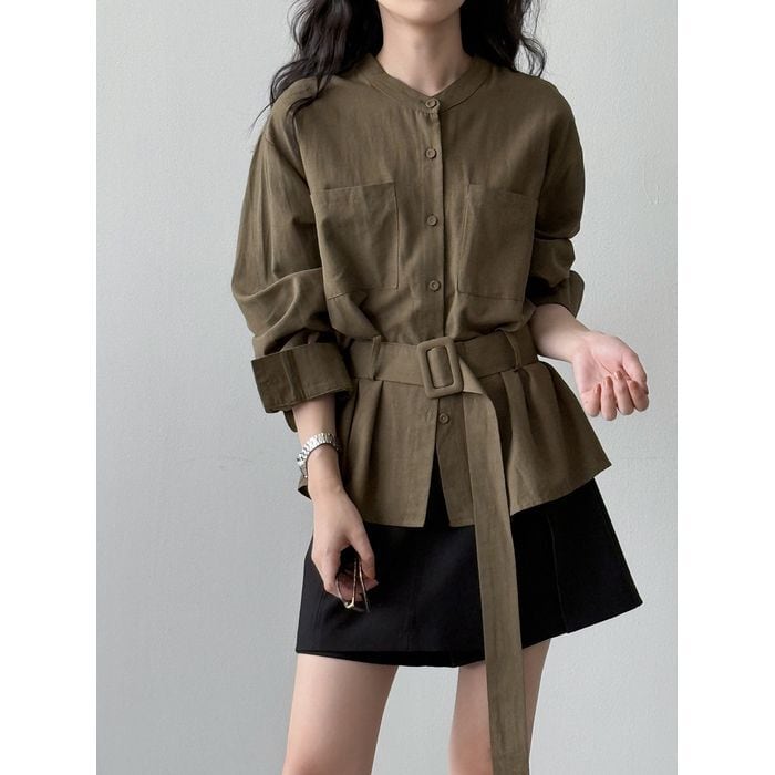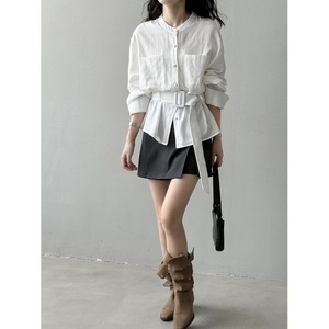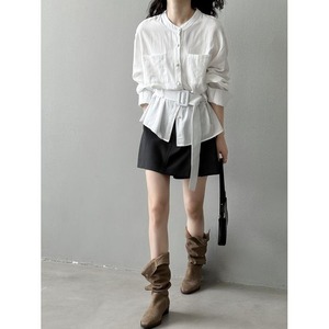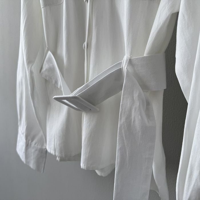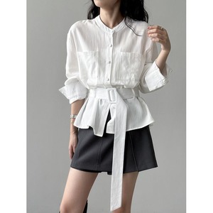 同布のウエストベルトで動きのあるシルエットを演出するシャツ。