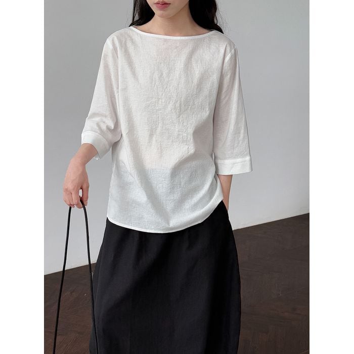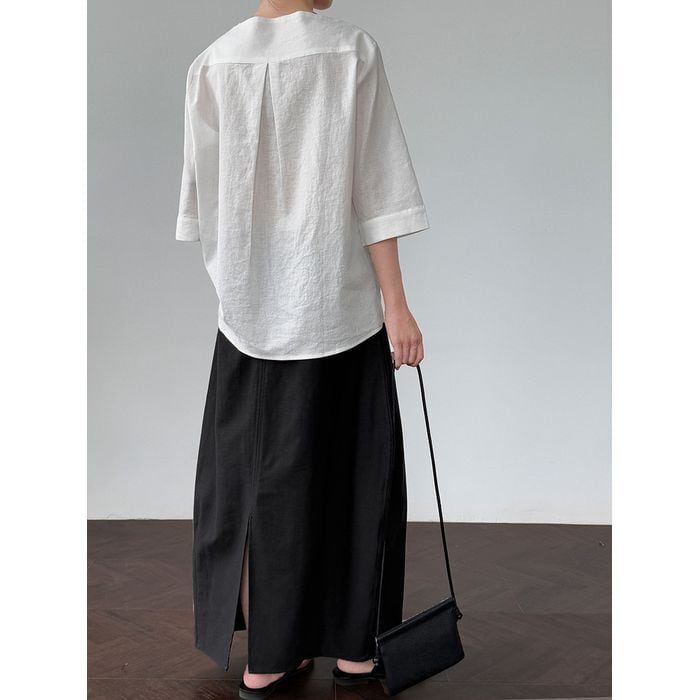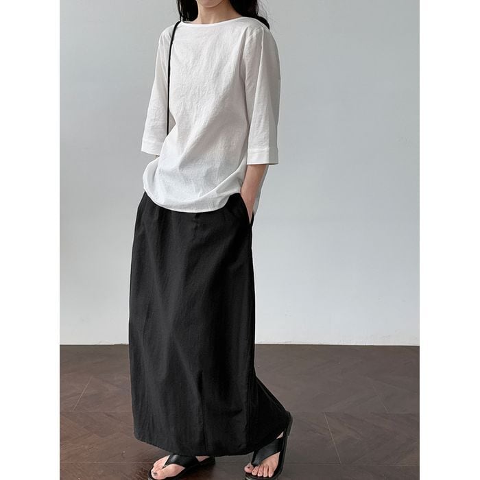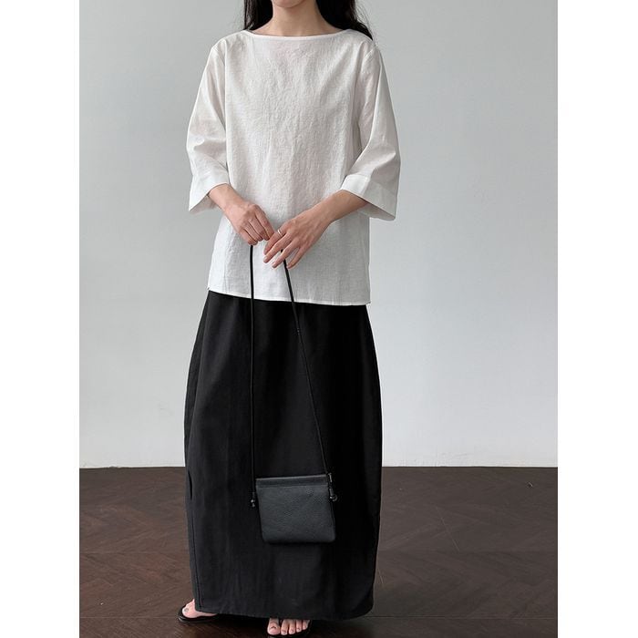 シンプルでボトムスを選ばず着回し力のある1枚です。