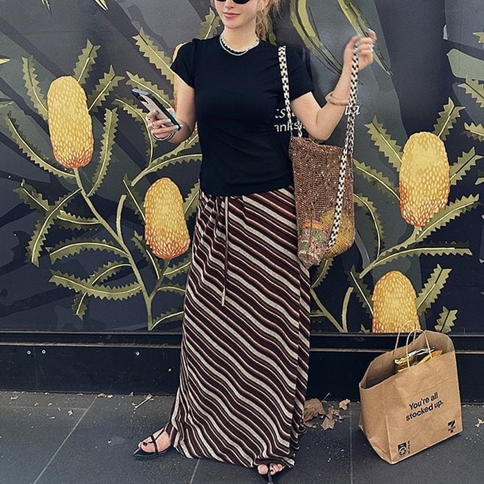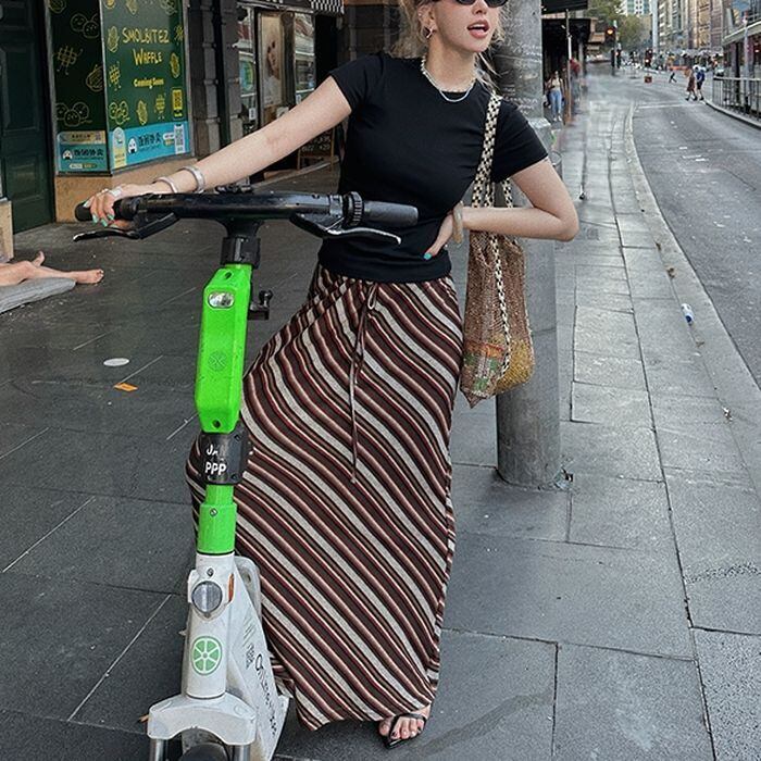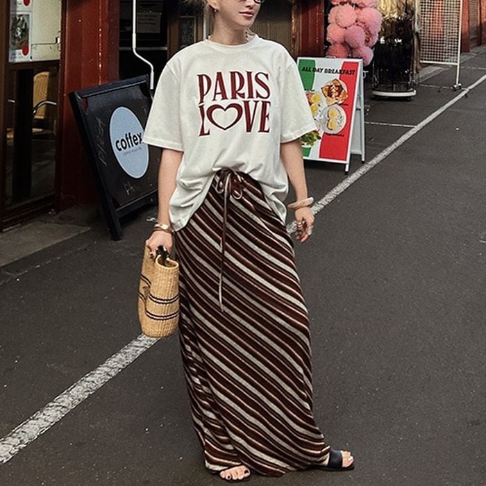 シンプルなトップスと合わせてコーディネートのアクセントに。