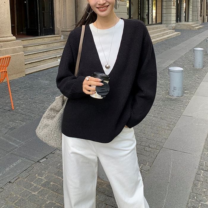 深めのVネックで重ね着にぴったりなニット。 インナーとのコントラストで、表情豊かな着こなしを叶えます。 【サイズ】 S 胸囲:100cm 着丈:58cm 袖丈:67.5cm M 胸囲:104cm 着丈:59.5cm 袖丈:68.8cm L 胸囲:108cm 着丈:61cm 袖丈:70.1cm ※モデル 170cm Sサイズ着用 ※海外製品につき1-3cm程度誤差がある場合がございます。 【素材】 ポリエステル アクリル ナイロン ポリエステル 【カラー】 ネイビー ブラック ■abeilleでは、多数アイテムを取り揃えております。 下記URLよりぜひチェックしてみて下さい♪ https://www.abeille.shop/ ■今週の人気ランキングはこちら♪ https://www.abeille.shop/categories/3518518 ****ご購入前に必ずお読みください**** https://www.abeille.shop/about 【お届けについて】 こちらの商品は海外店舗より直接発送となる為、 ご入金から「10日~3週間前後」で発送致します。 ■注意事項 ・タイミングによっては 商品在庫切れにより 注文キャンセルとさせていただく恐れもございますので、予めご了承くださいませ。 ・こちらは輸入品となります。日本製とは検品基準が異なる為、 新品未使用品でもごくわずかな汚れや ほつれがある場合もございます。 ・仕入れ工場を変えることがあるため、記載サイズと若干異なる場合がございます。 ・商品の色味は、お手持ちのスマートフォンの画面によって実物と若干異なる場合がございます。 ・イメージ違いやサイズ交換等、お客さまご都合による交換、返品は対応出来かねます。 【お支払方法】 ・クレジットカード決済 (VISA/Master/JCB/AMERICAN EXPRESS) ・キャリア決済 (docomo/au/SoftBank/Y!mobile/UQmobile) ・銀行振込 (三井住友銀行) ・コンビニ決済・Pay-easy ・後払い決済 *ーー*ーー*ーー*ーー*ーー*ーー*ーー* 【abeille】Instagram https://www.instagram.com/abeille_closets/