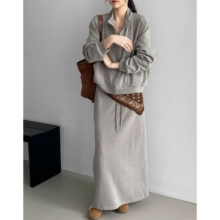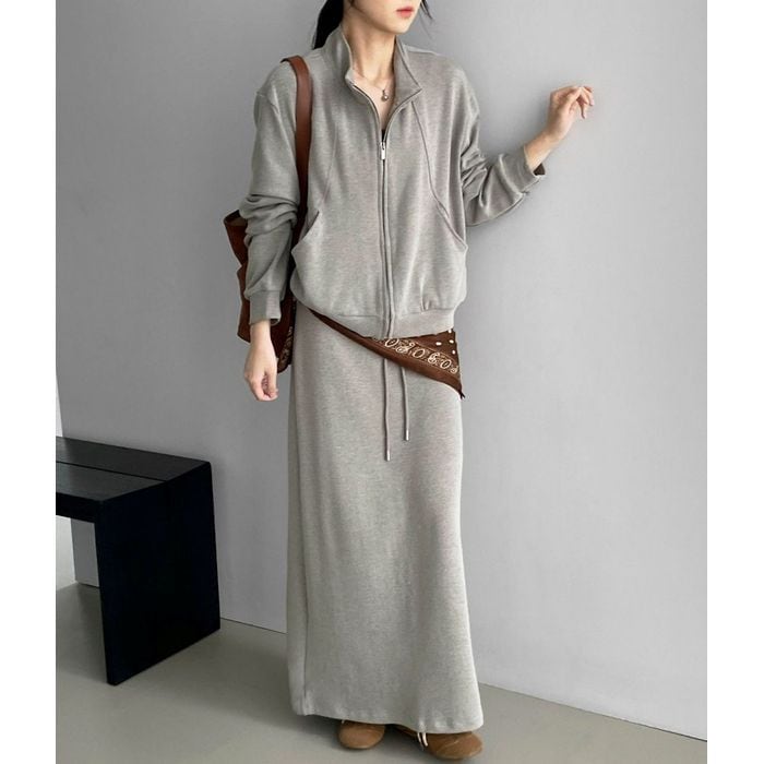 ジップアップフーディとスカートのセットアップ。