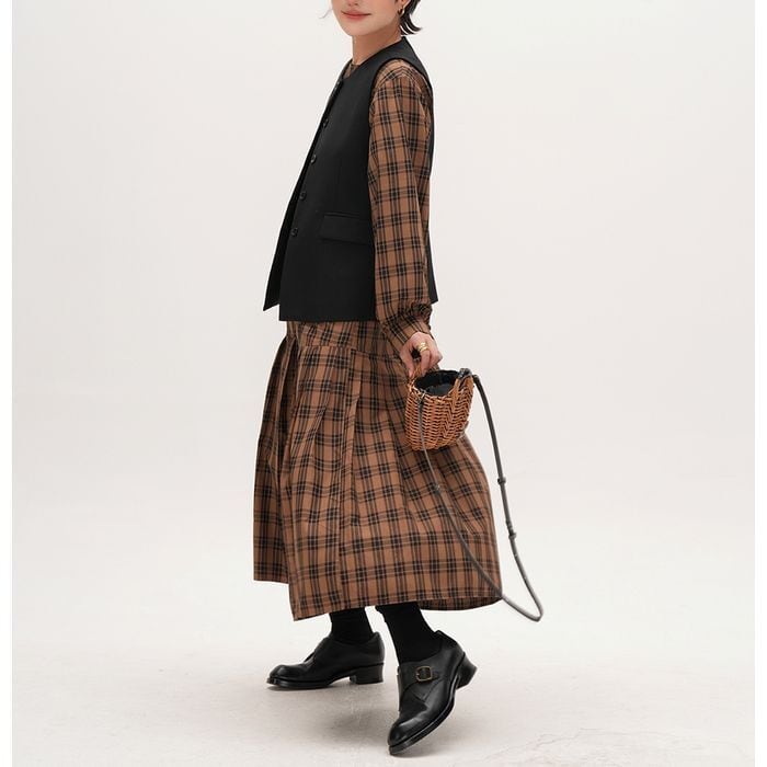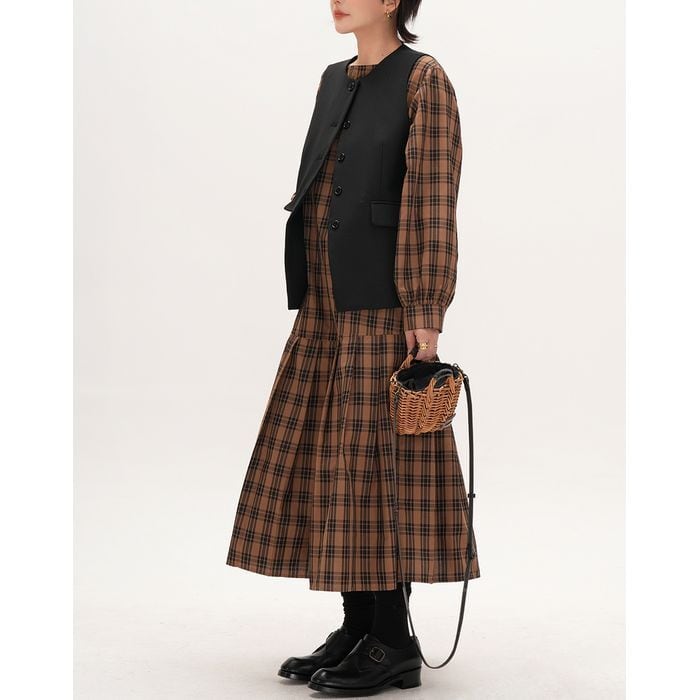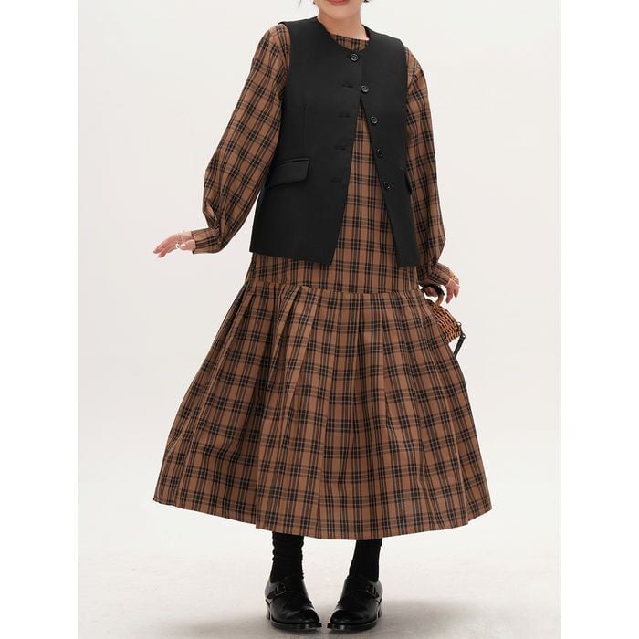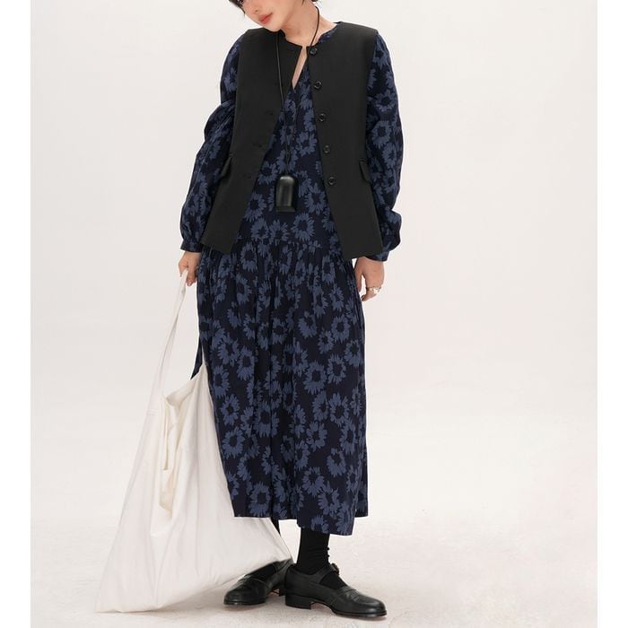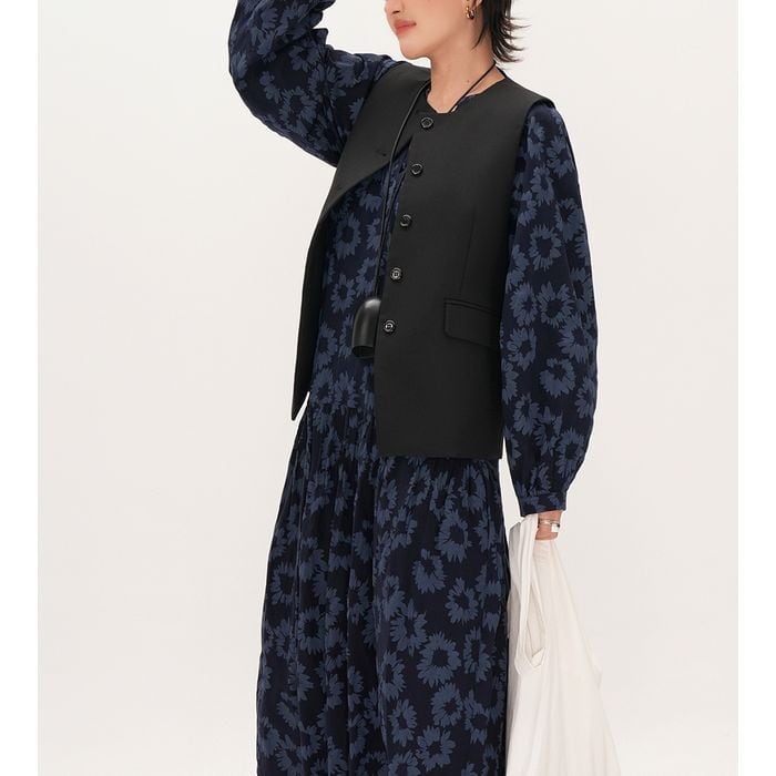 すっきりとしたシルエットのボタン付きベスト。