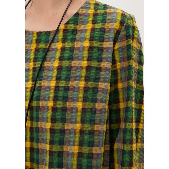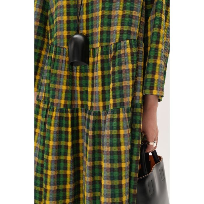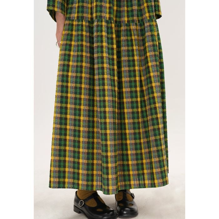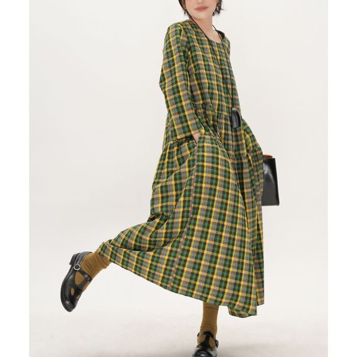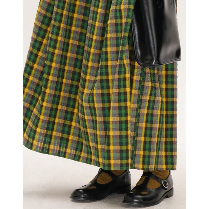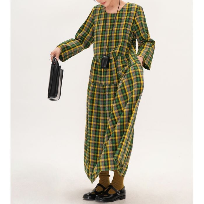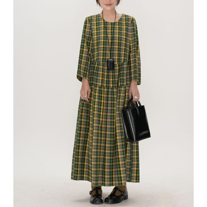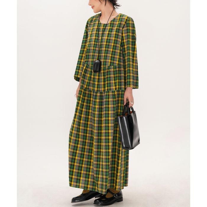 存在感のあるチェック柄が目を惹くロングワンピース。
