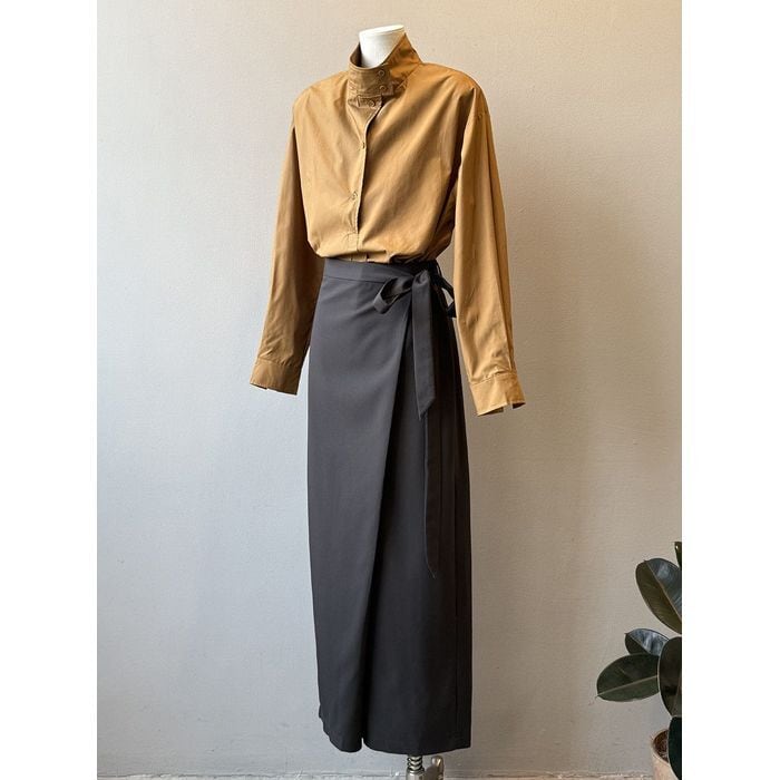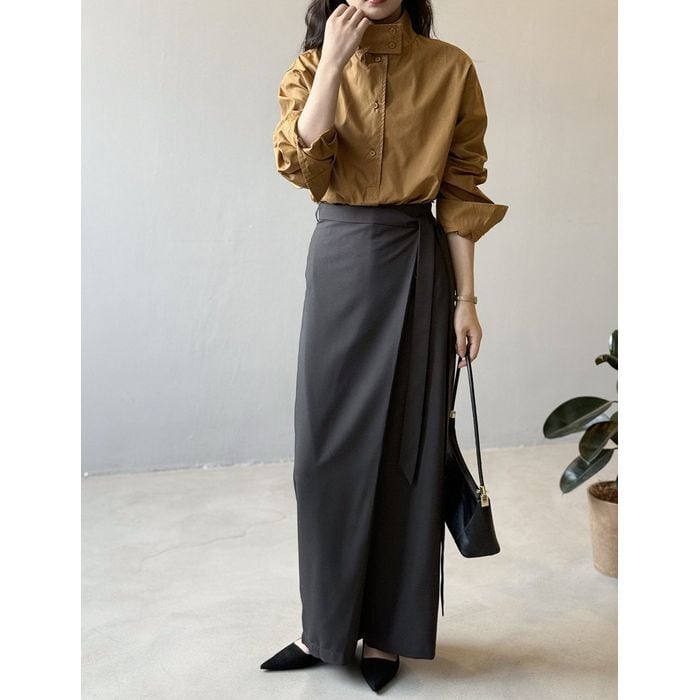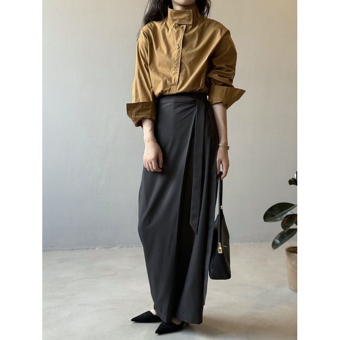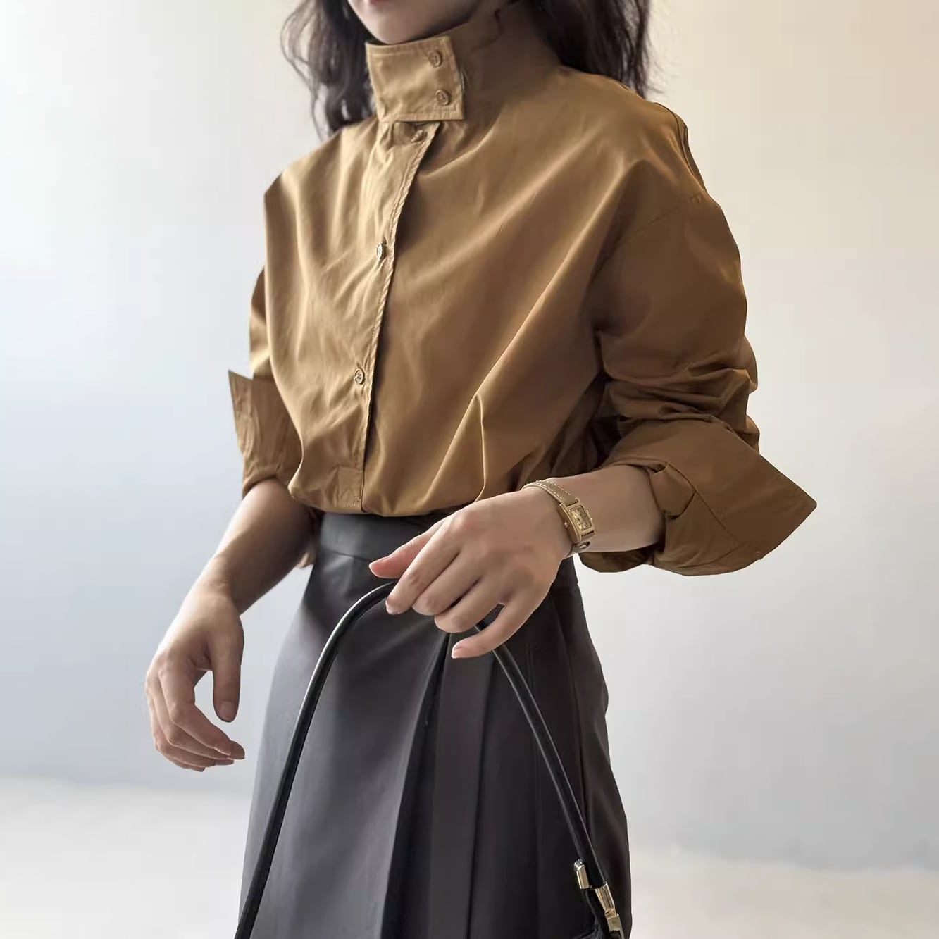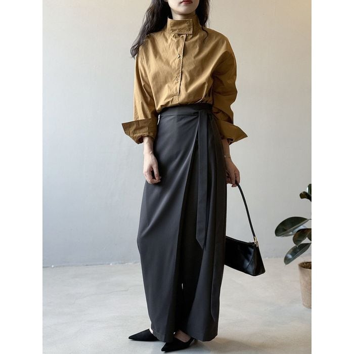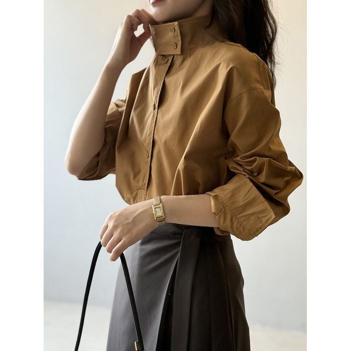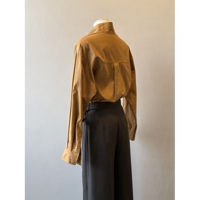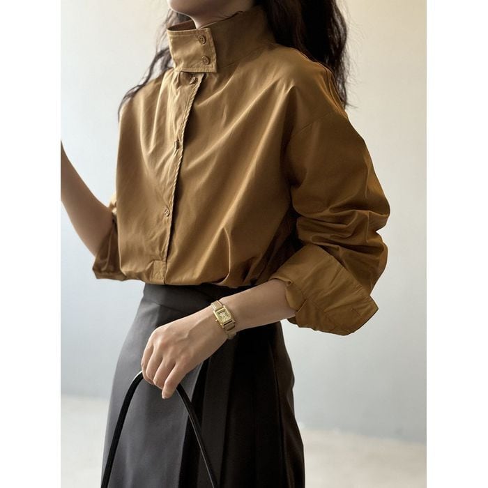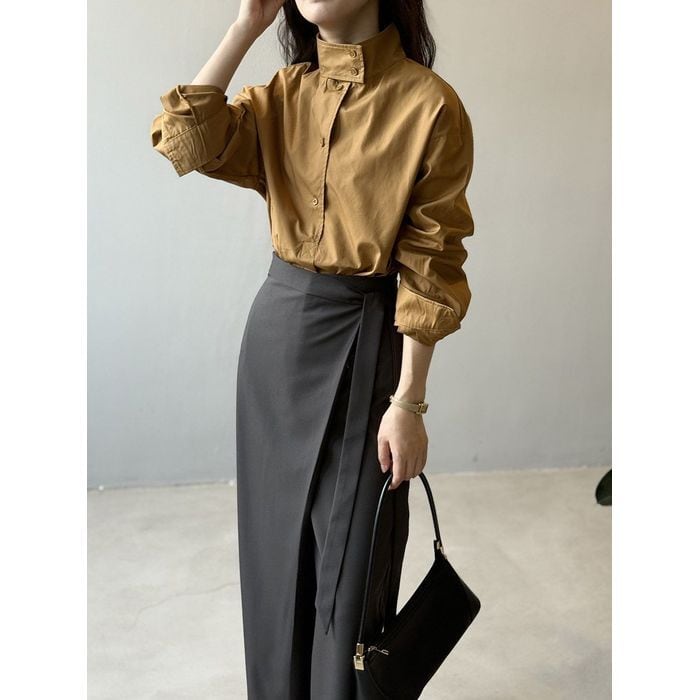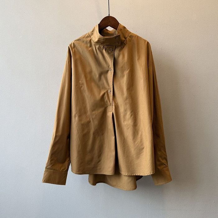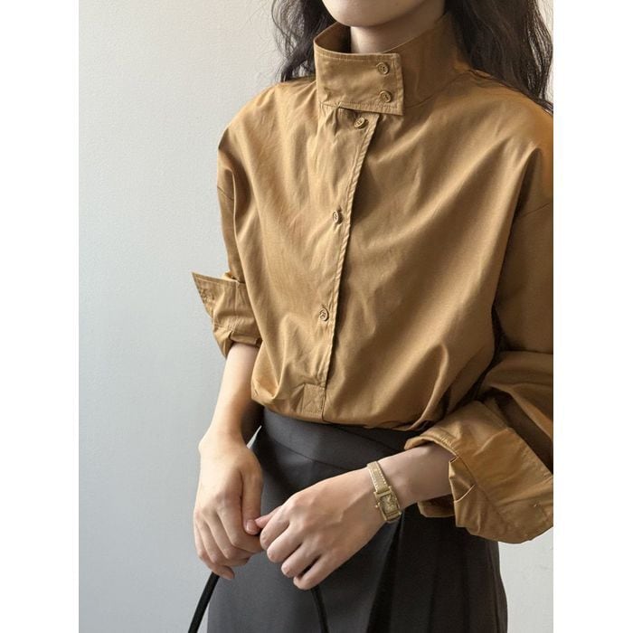 ボタン付のスタンドカラーが特徴的なシャツ。