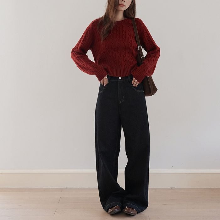 フェミニンな素材感のケーブルニット。 https://www.abeille.shop/items/120622497