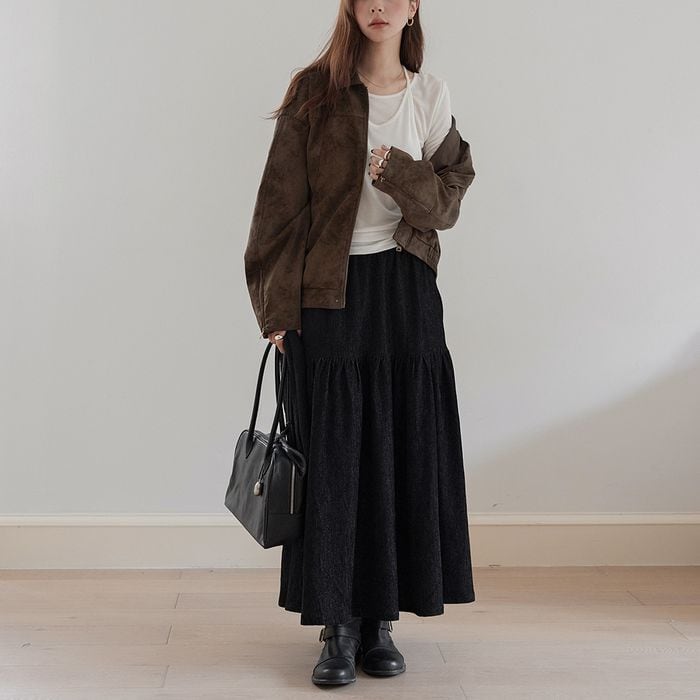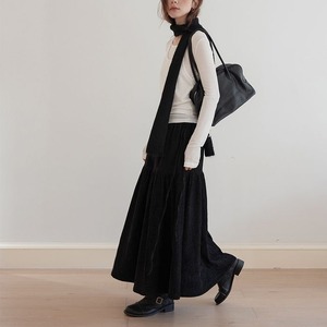 揺れるティアードデザインが特徴のロングスカート。