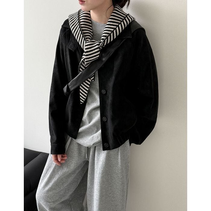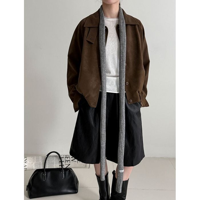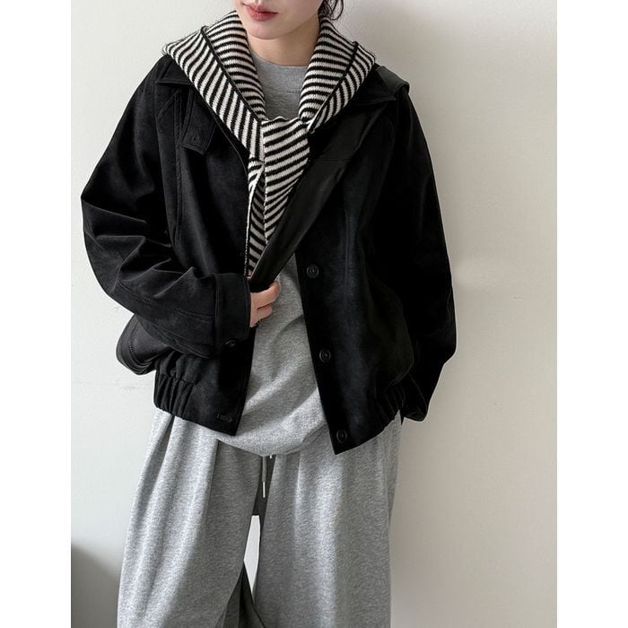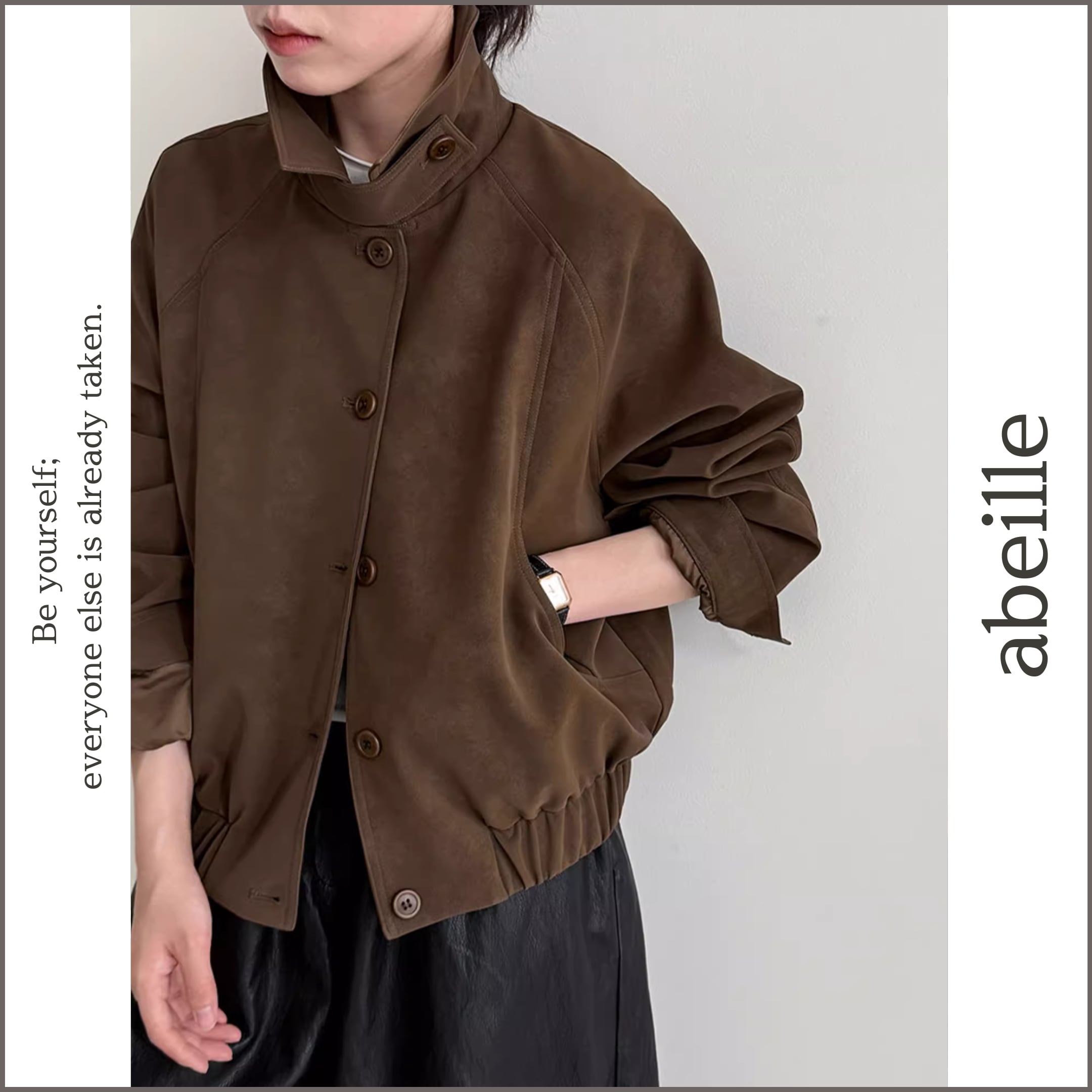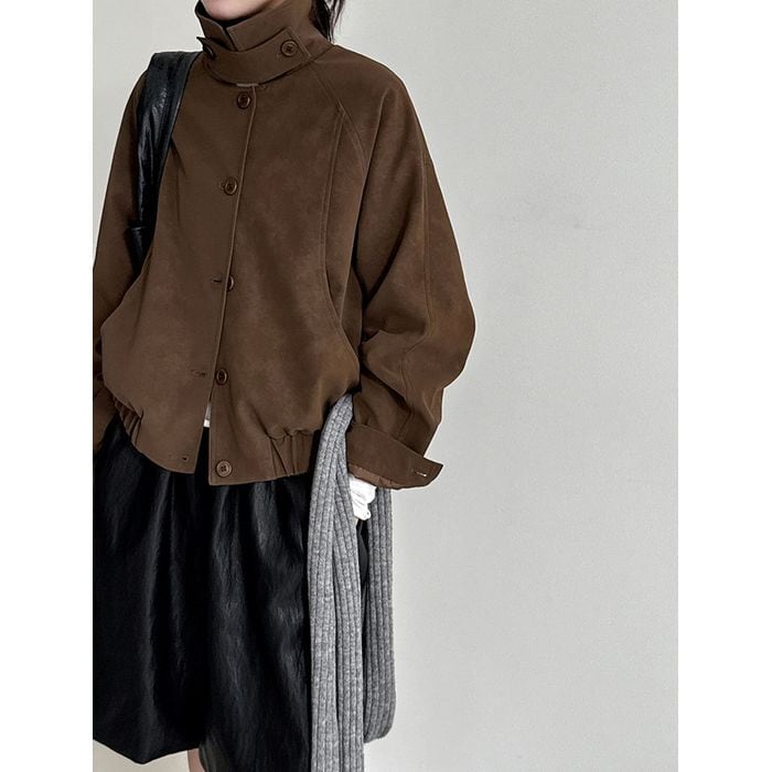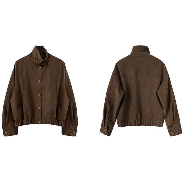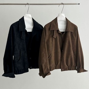 スタンドカラーが印象的なショート丈ブルゾン。