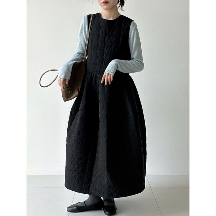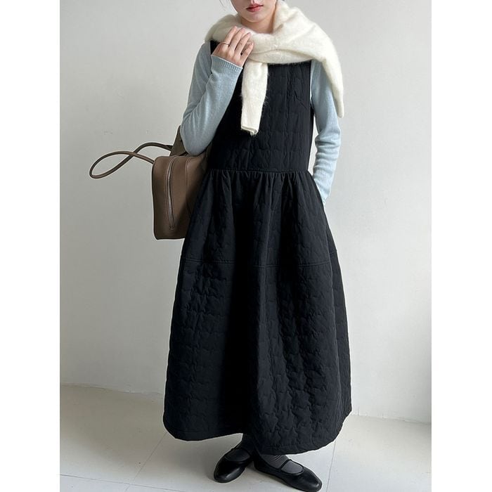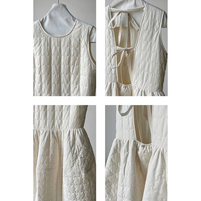 背中のリボンとキルティング加工が魅力のジャンパースカート。