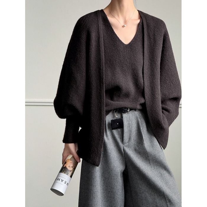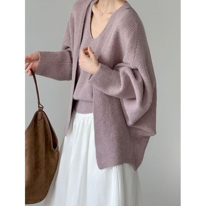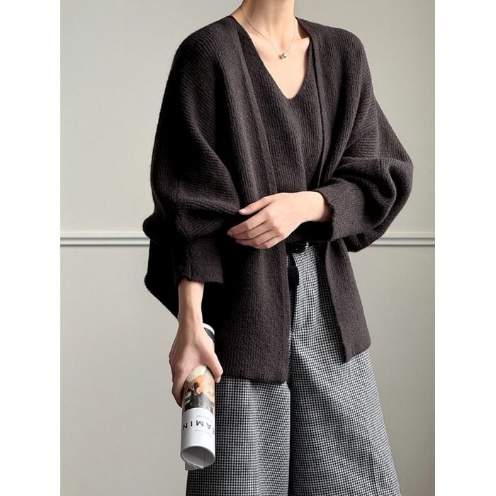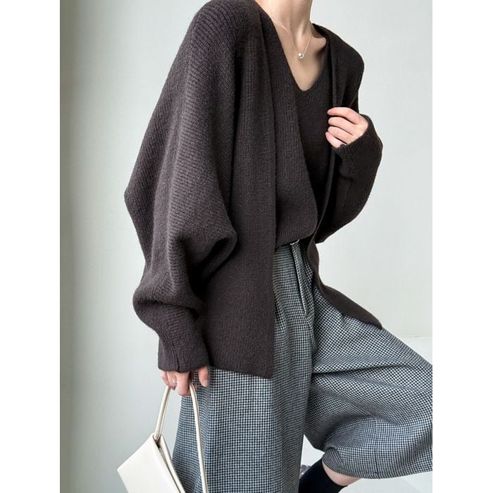 knit cardigan & sleeveless top set 14010