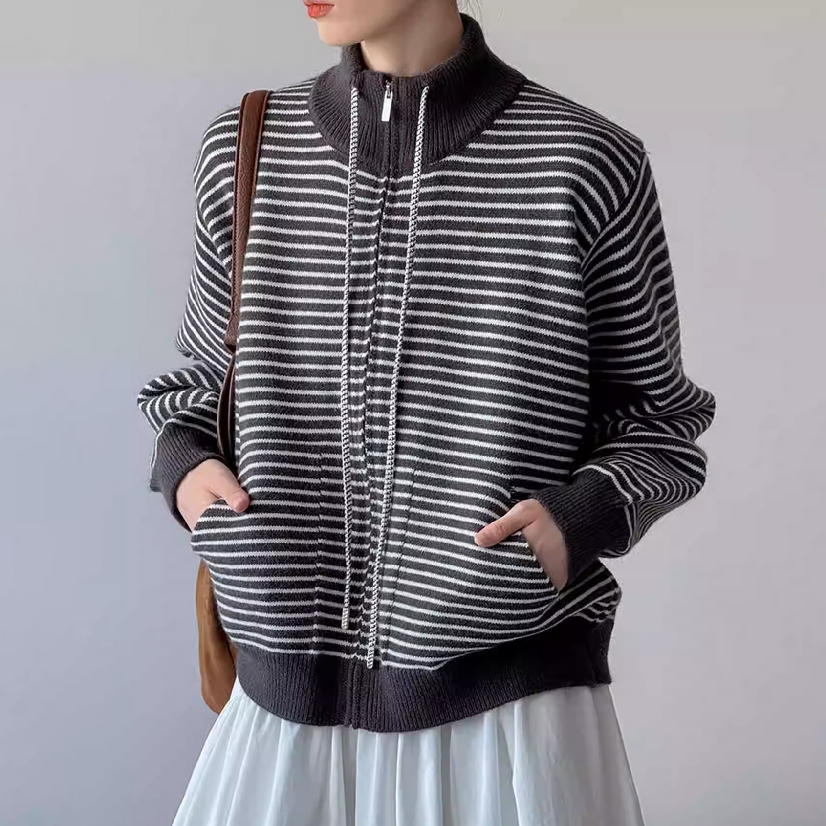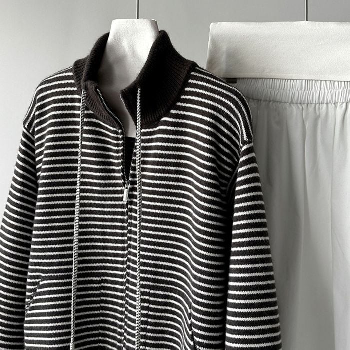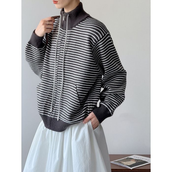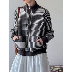 high neck boder zip-up knit 14014