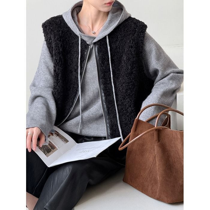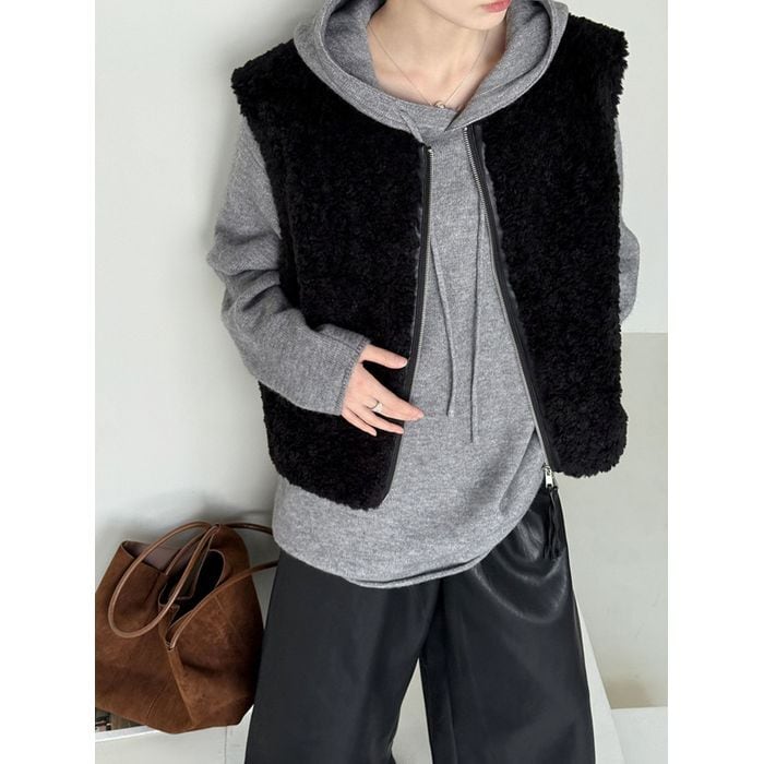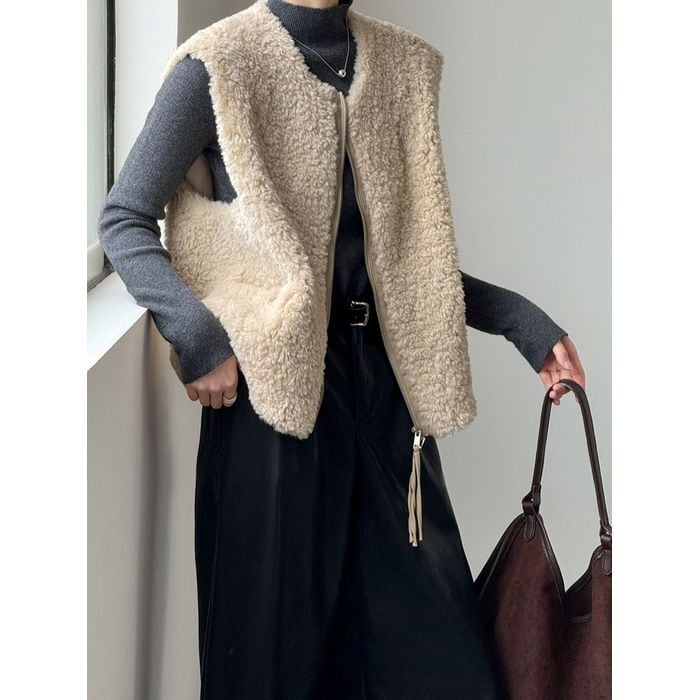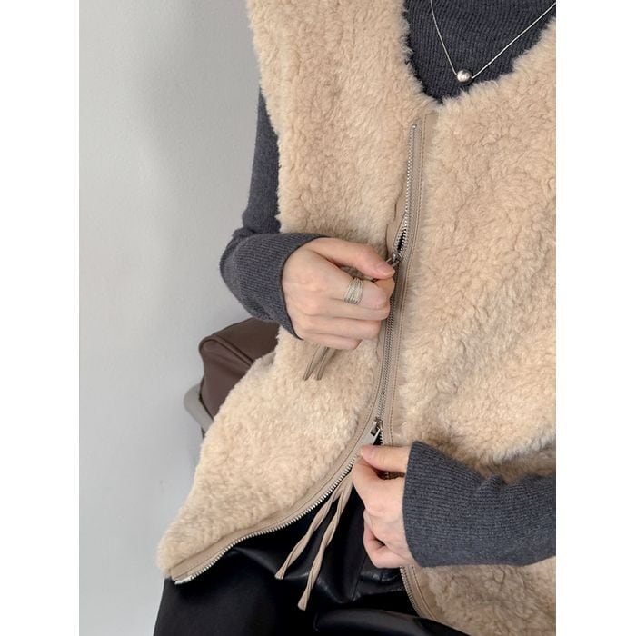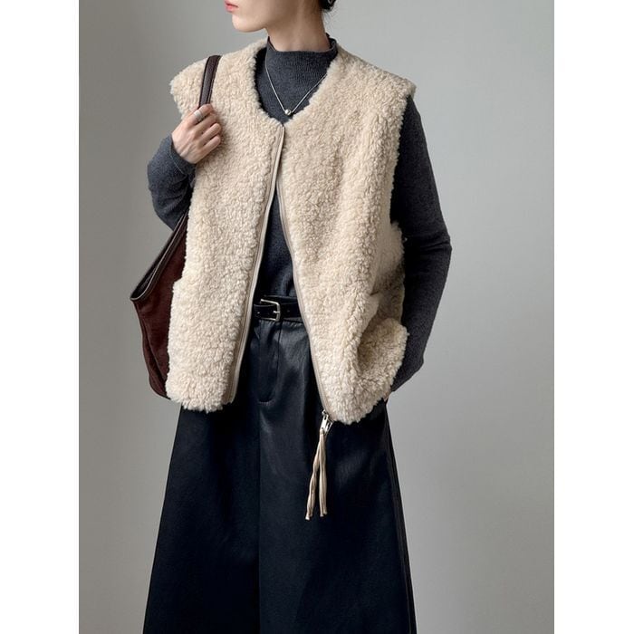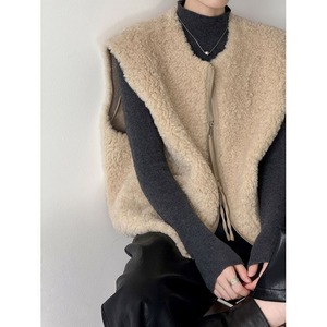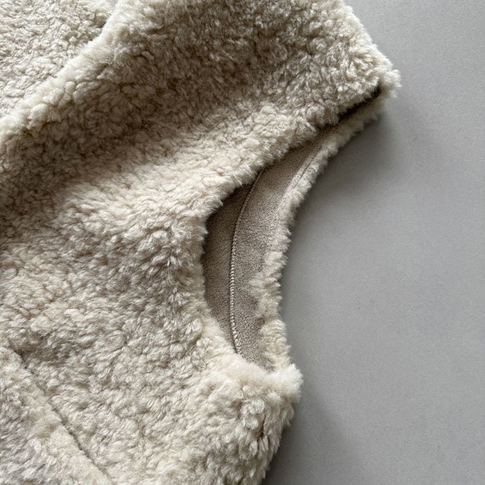 シーズンムード漂うボア素材のベスト。