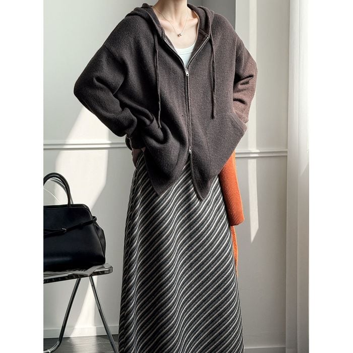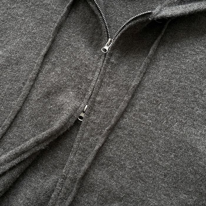 上下ジッパーの付いたニットフーディ。