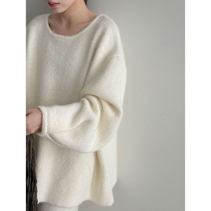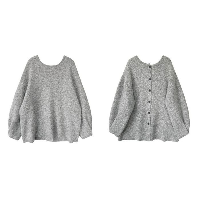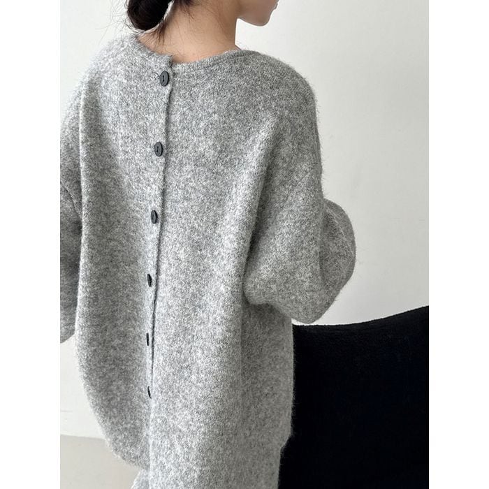 ニットのバックボタントップスとスカートのセット。