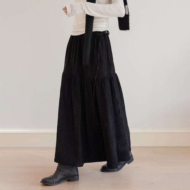 アウターの前を開けて、首元のデザインを見せる着こなしが映えます。
