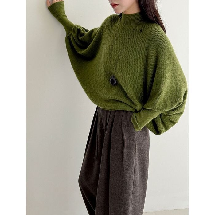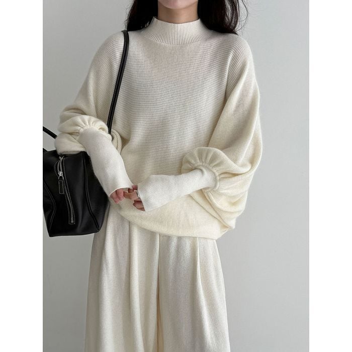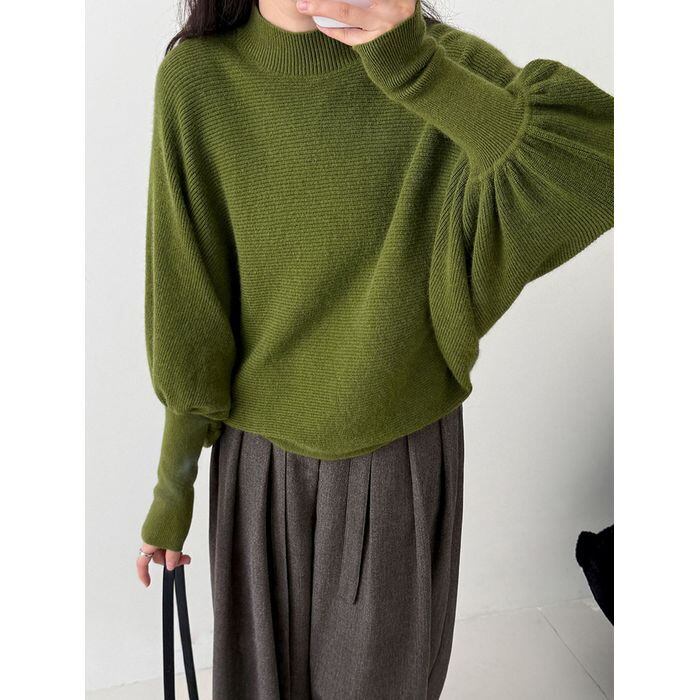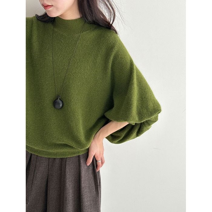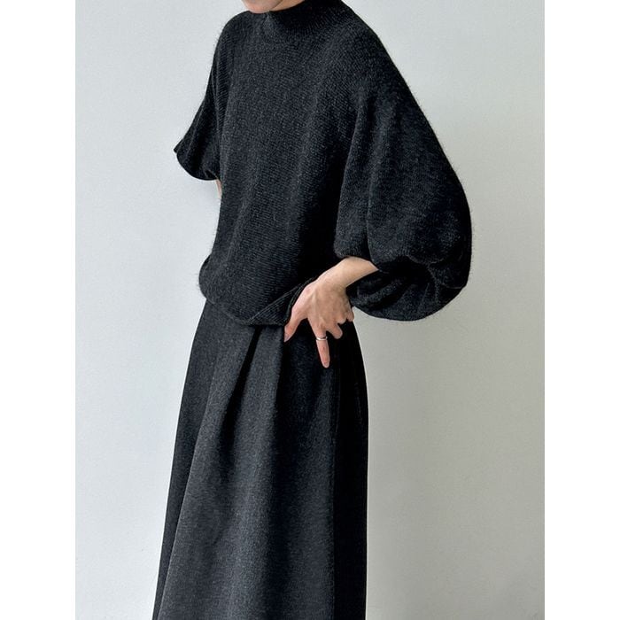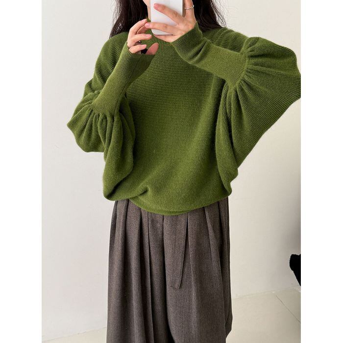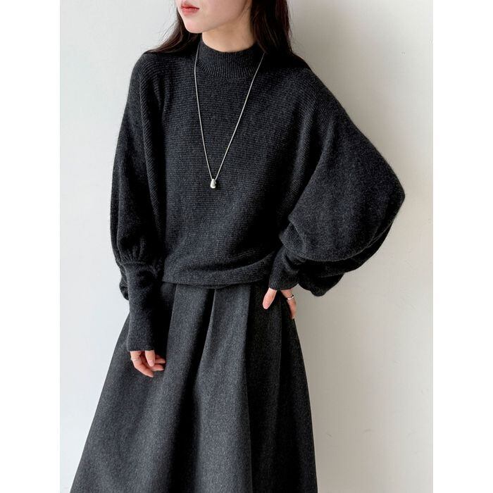 ふんわりとしたボリュームスリーブが印象的なニットプルオーバー。