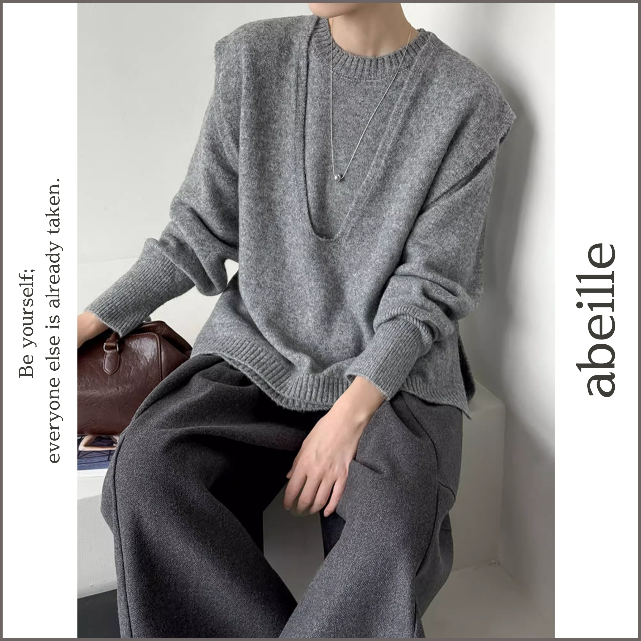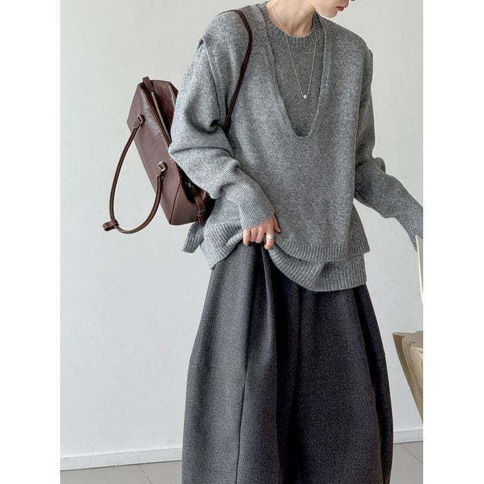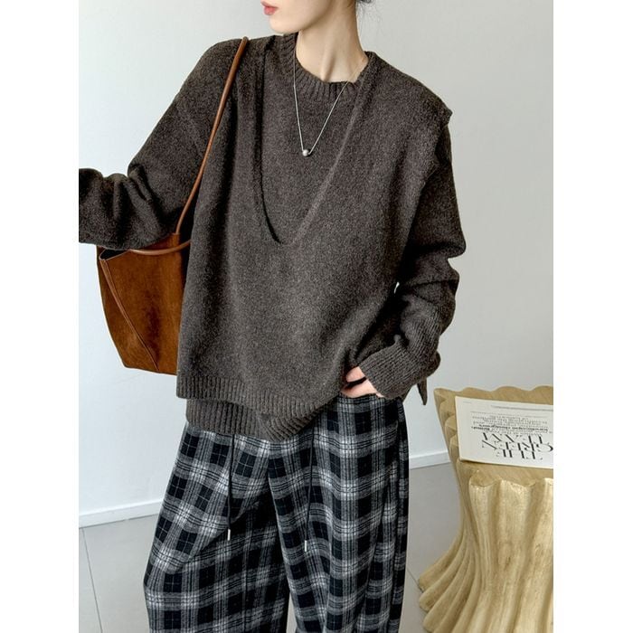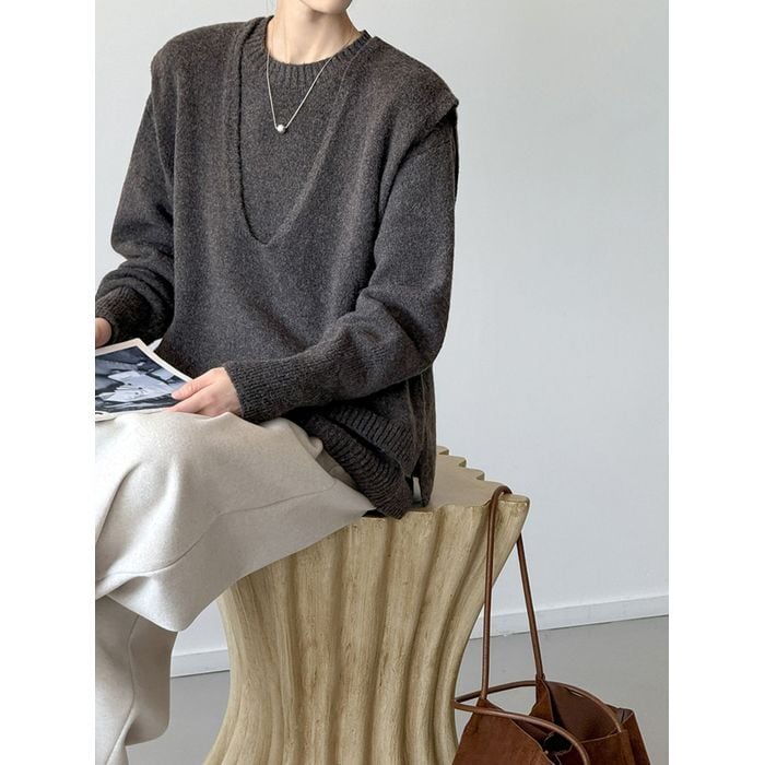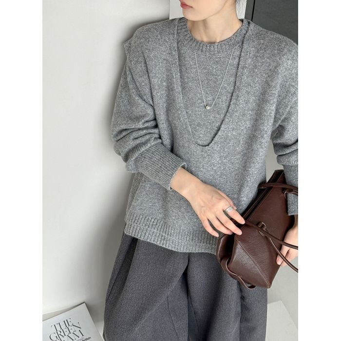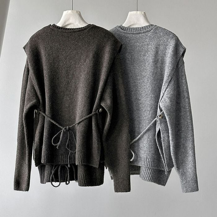 knit back tie vest & pullover set 14069