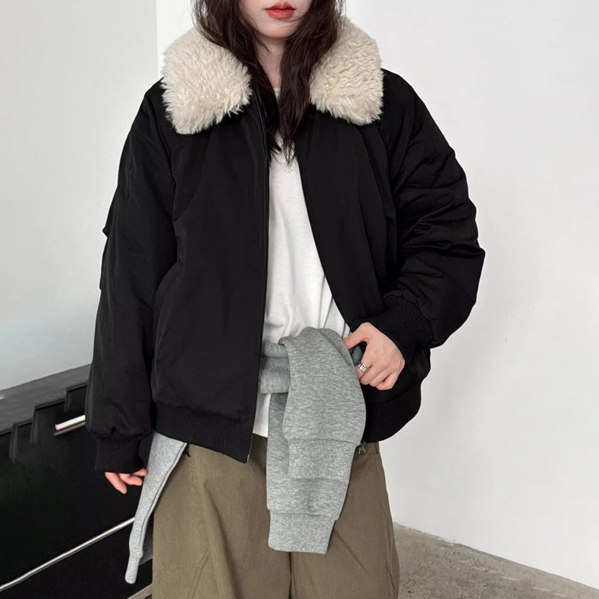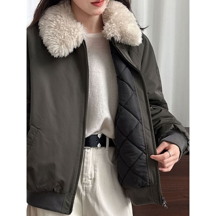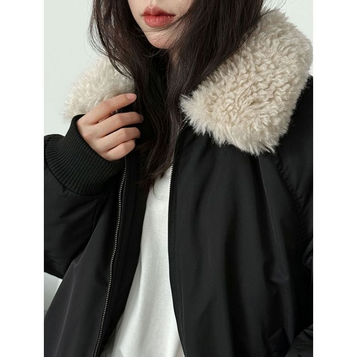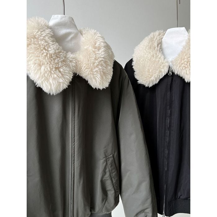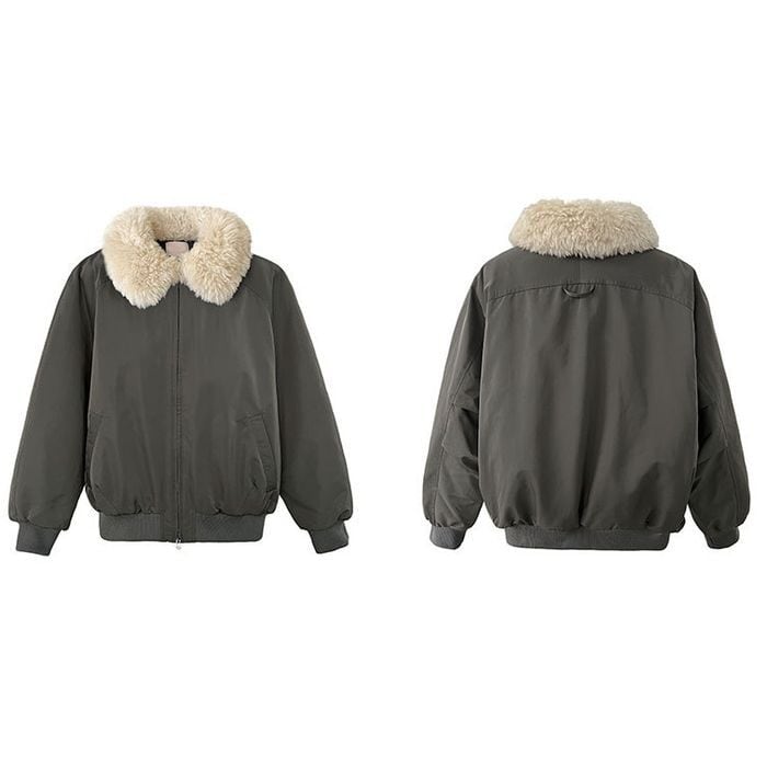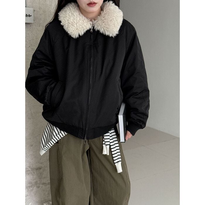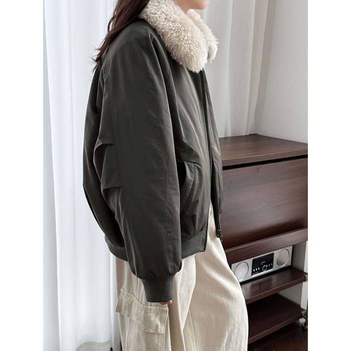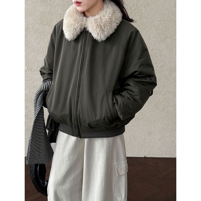 eco fur collar zip-up jacket 14075