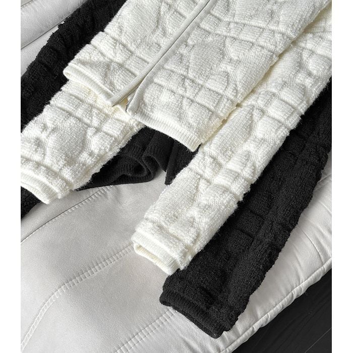 立体的なキルティング調のデザインが印象的なジップアップフーディ。