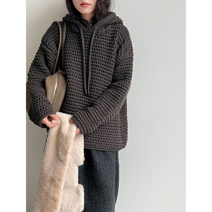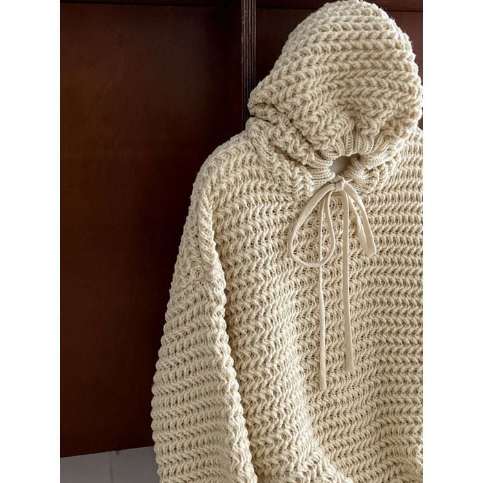ざっくりとした編み目が魅力のフーディ。