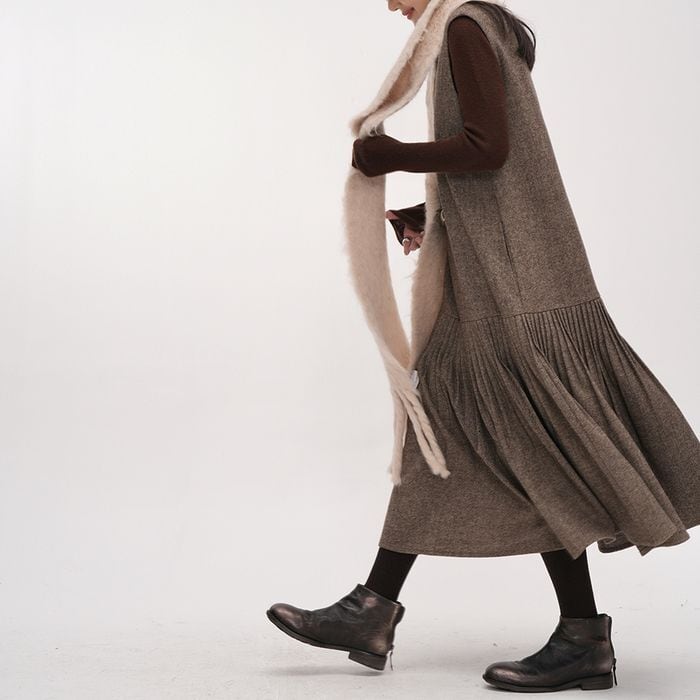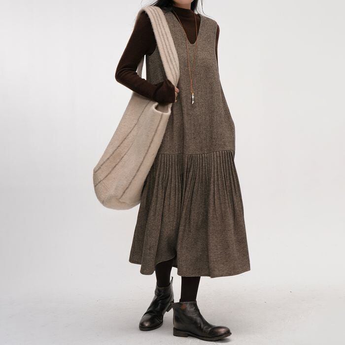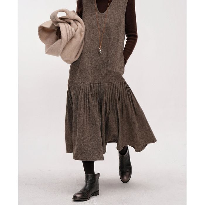 ウエスト下から広がるプリーツが魅力のジャンパースカート。