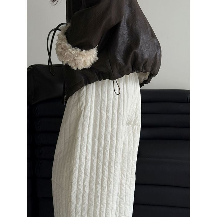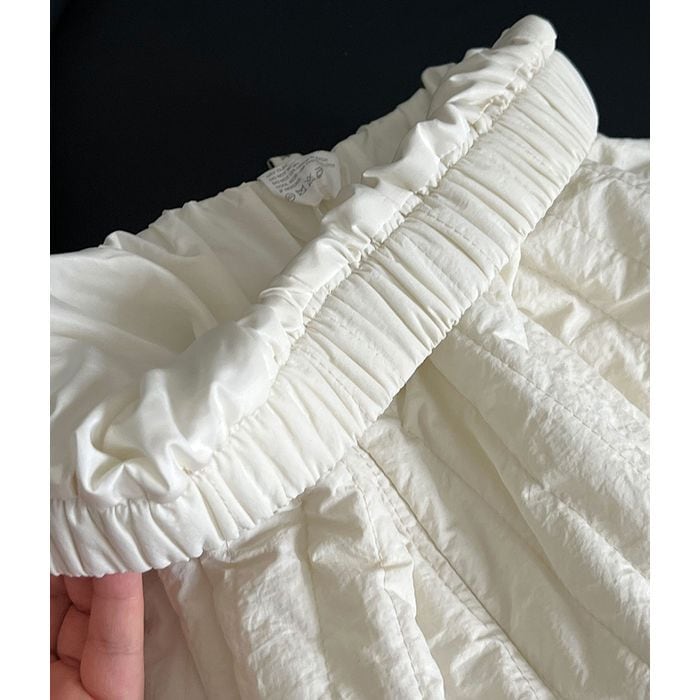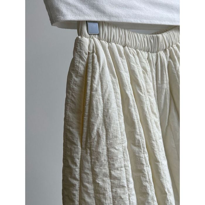 ショート丈のトップスやアウターと合わせることで、バランスの取れたスタイリングが楽しめる一枚です。