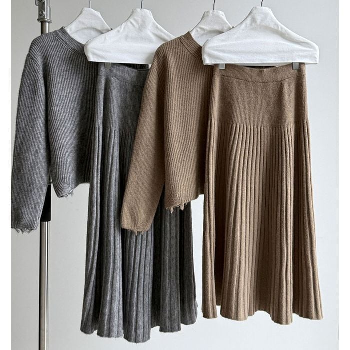 rib knit top & skirt set 14115