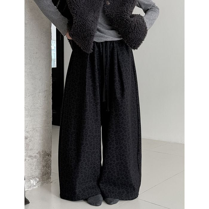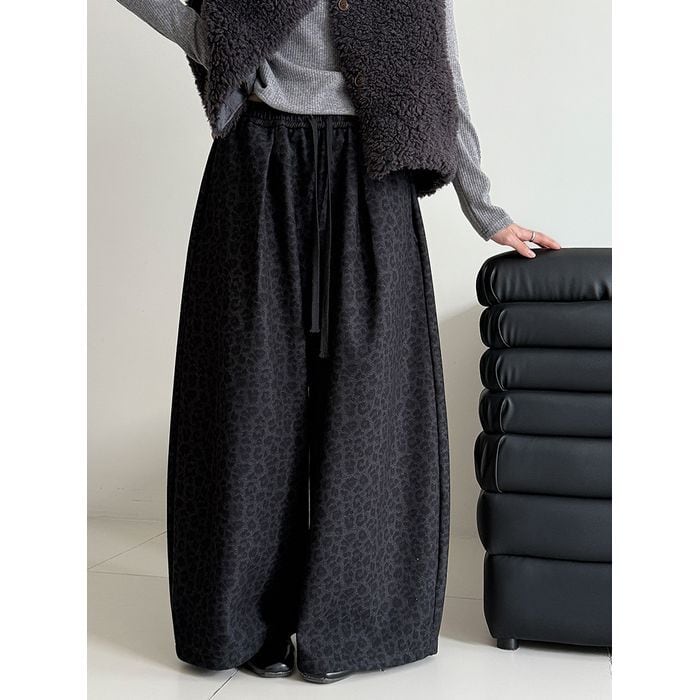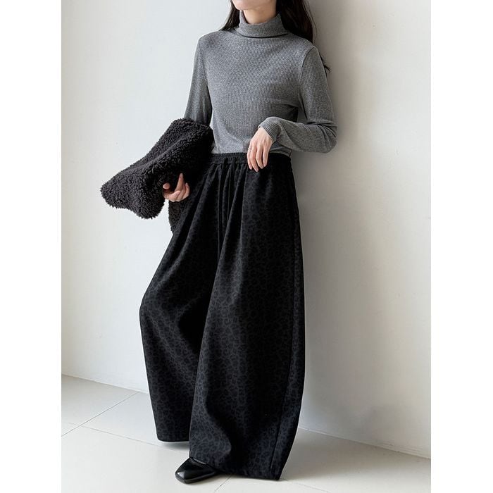 落ち着いたトーンのレオパード柄が魅力のワイドパンツ。
