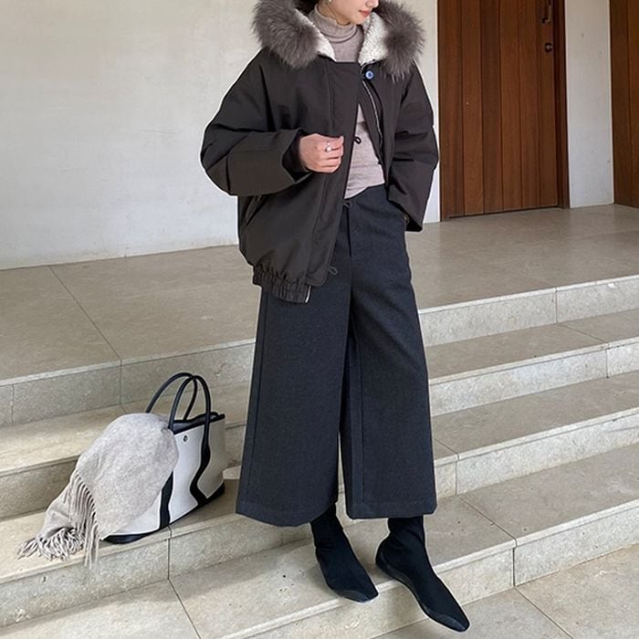 デニムやワイドパンツなどと合わせて、冬のカジュアルスタイルを楽しめます。