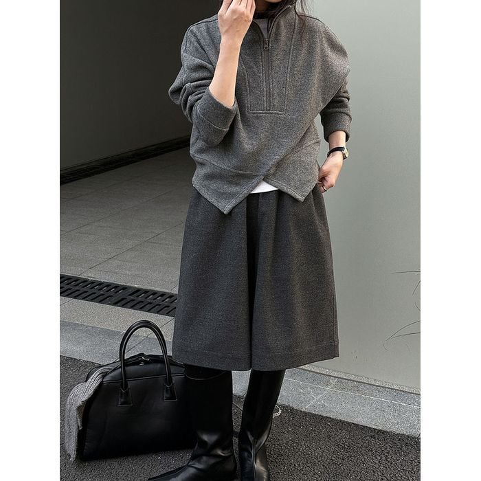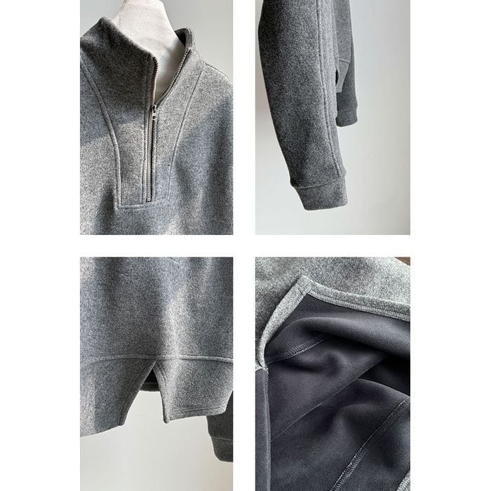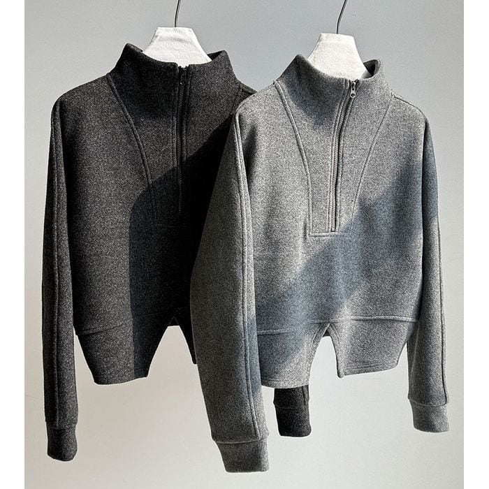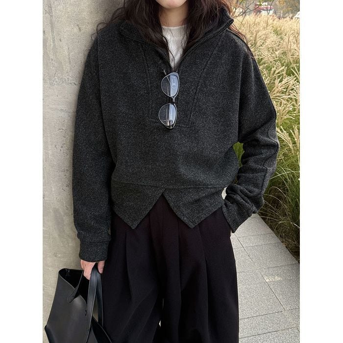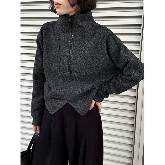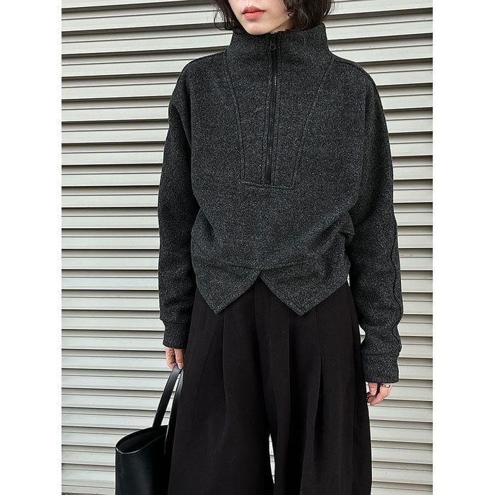 ハーフジップデザインとスリットで、上下に抜け感のあるプルオーバートップス。