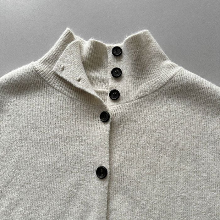 すっきりとしたシルエットのタートルネックニット。