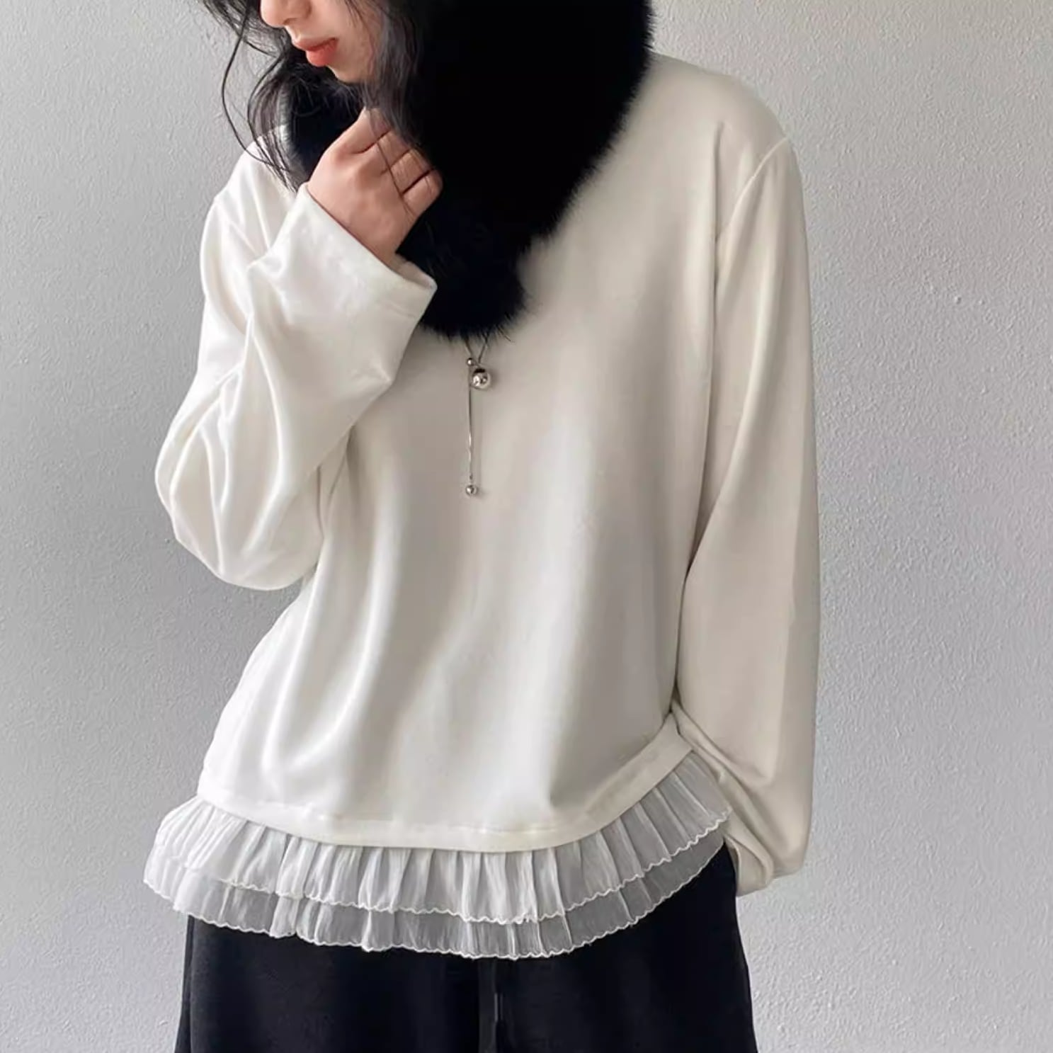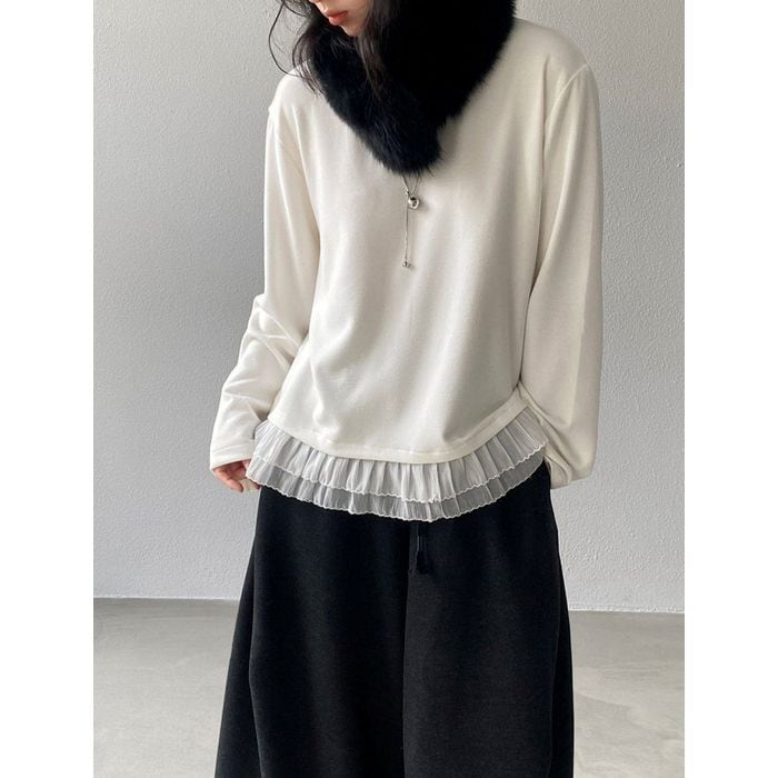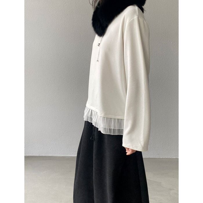 程よい丈感でパンツにもスカートにも合わせやすく、デイリーコーデに取り入れやすい1枚です。