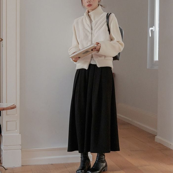 縦に入ったタックですっきりとした印象のロングスカート。 https://www.abeille.shop/items/131233946