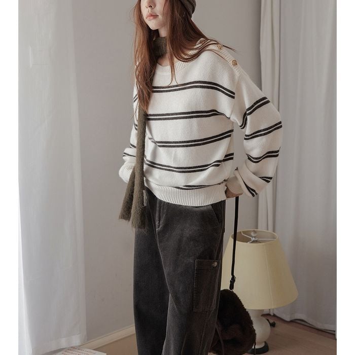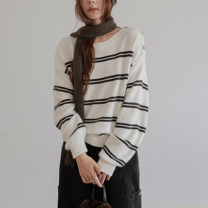 肩のボタンディテールがポイントのボーダーニットトップス。 デニムやスカートなど、さまざまなアイテムと合わせやすい万能な一枚です。 【サイズ】 S 肩幅:54cm 胸囲:98cm 着丈:54cm 袖丈:57cm M 肩幅:56cm 胸囲:102cm 着丈:56cm 袖丈:58cm L 肩幅:58cm 胸囲:106cm 着丈:57cm 袖丈:59cm ※モデル 168cm Mサイズ着用 ※海外製品につき1-3cm程度誤差がある場合がございます。 【素材】 ナイロン アクリル ウール 【カラー】 オフホワイト グレー ネイビー ■abeilleでは、多数アイテムを取り揃えております。 下記URLよりぜひチェックしてみて下さい♪ https://www.abeille.shop/ ■今週の人気ランキングはこちら♪ https://www.abeille.shop/categories/3518518 ****ご購入前に必ずお読みください**** https://www.abeille.shop/about 【お届けについて】 こちらの商品は海外店舗より直接発送となる為、 ご入金から「10日~3週間前後」で発送致します。 ■注意事項 ・タイミングによっては 商品在庫切れにより 注文キャンセルとさせていただく恐れもございますので、予めご了承くださいませ。 ・こちらは輸入品となります。日本製とは検品基準が異なる為、 新品未使用品でもごくわずかな汚れや ほつれがある場合もございます。 ・仕入れ工場を変えることがあるため、記載サイズと若干異なる場合がございます。 ・商品の色味は、お手持ちのスマートフォンの画面によって実物と若干異なる場合がございます。 ・イメージ違いやサイズ交換等、お客さまご都合による交換、返品は対応出来かねます。 【お支払方法】 ・クレジットカード決済 (VISA/Master/JCB/AMERICAN EXPRESS) ・キャリア決済 (docomo/au/SoftBank/Y!mobile/UQmobile) ・銀行振込 (三井住友銀行) ・コンビニ決済・Pay-easy ・後払い決済 *ーー*ーー*ーー*ーー*ーー*ーー*ーー* 【abeille】Instagram https://www.instagram.com/abeille_closets/