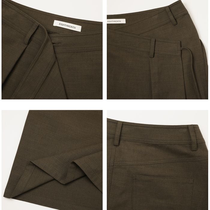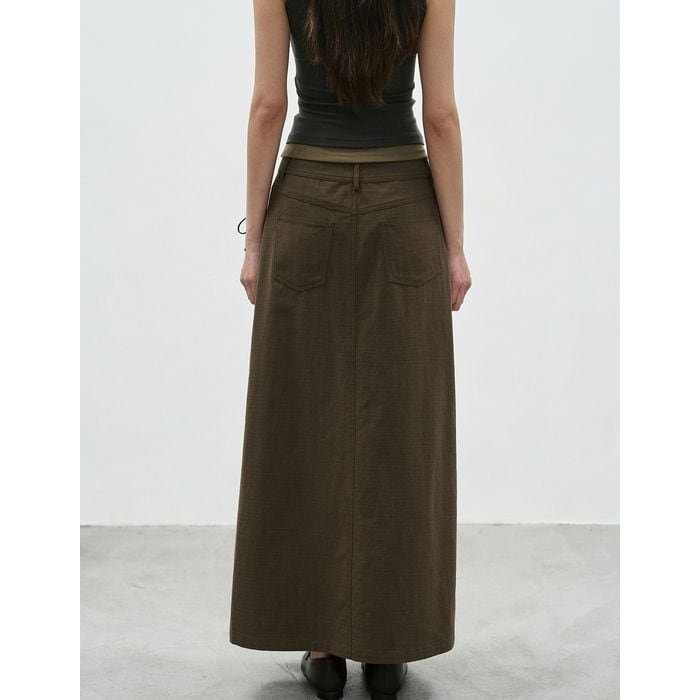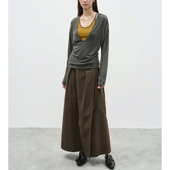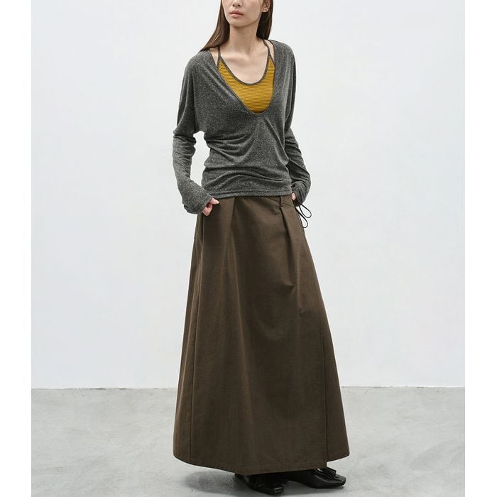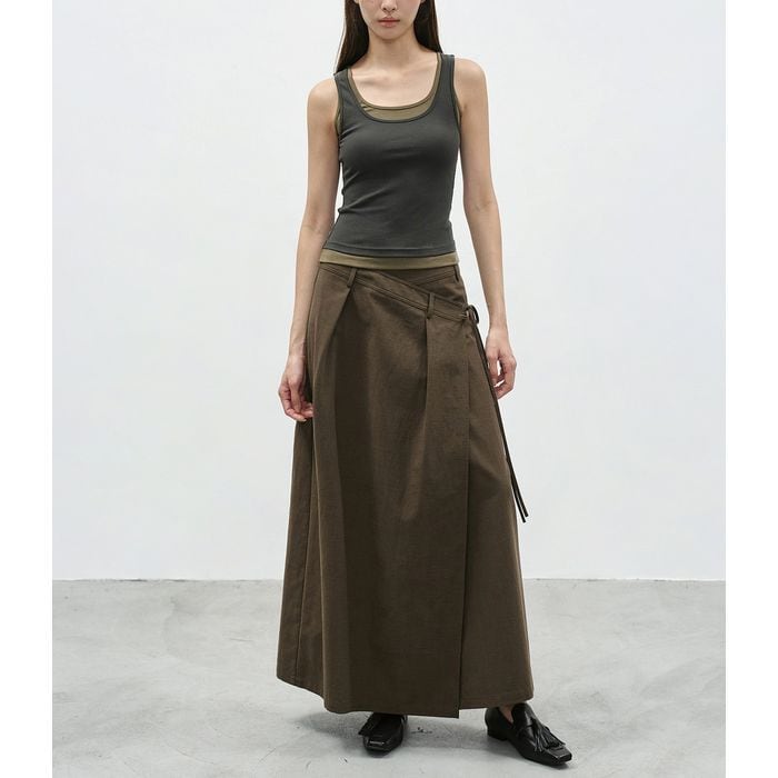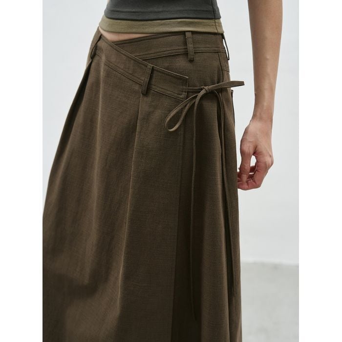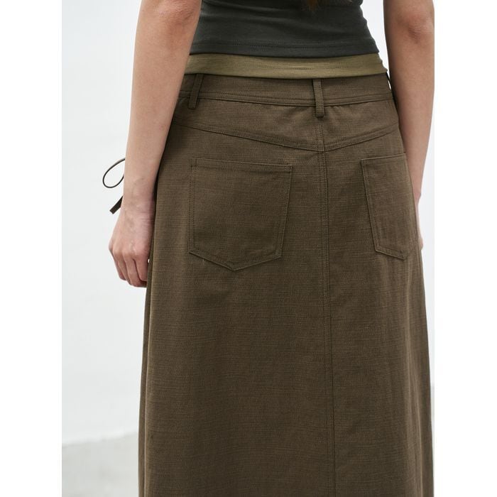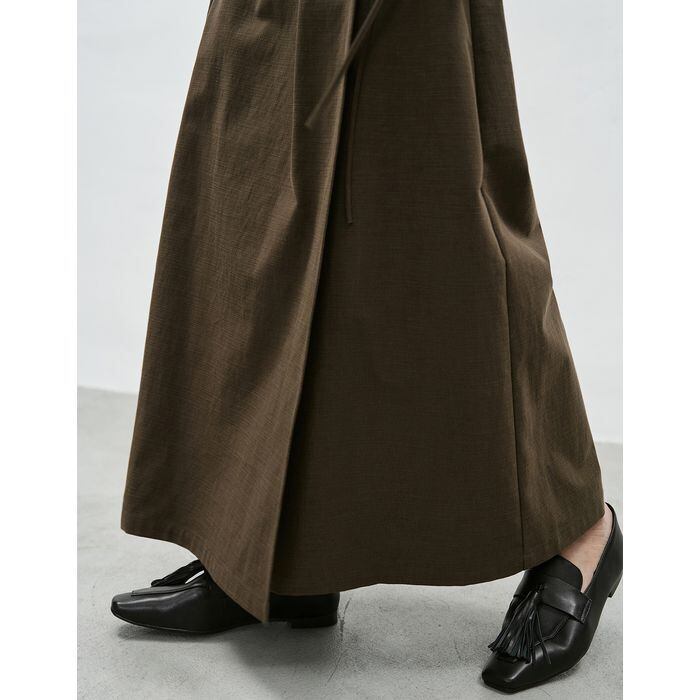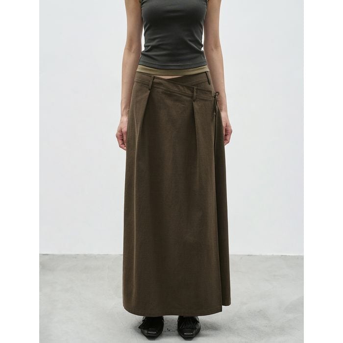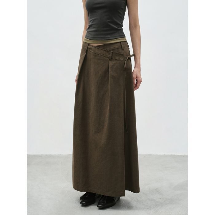 アシンメトリーなウエストデザインが魅力のロングスカート。