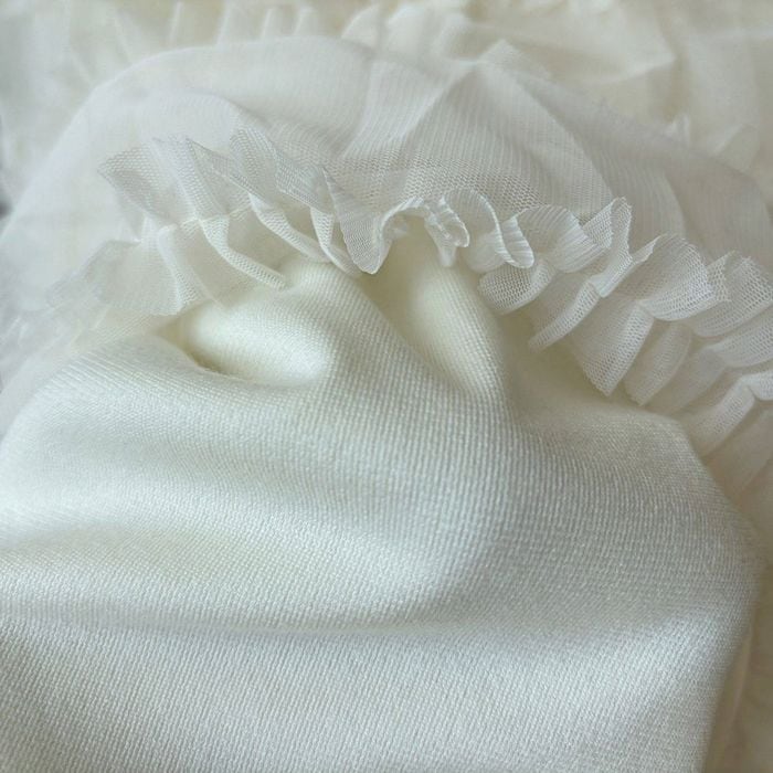 ニットやスウェットと合わせるだけで、フェミニンなムードを引き立てるスタイリングが完成します。