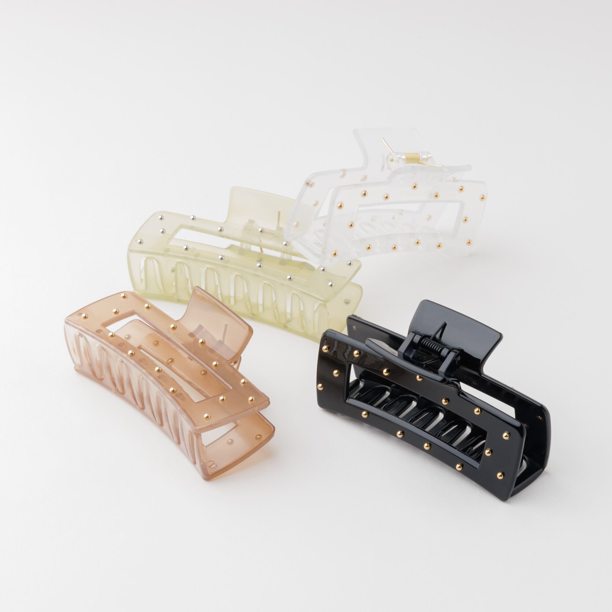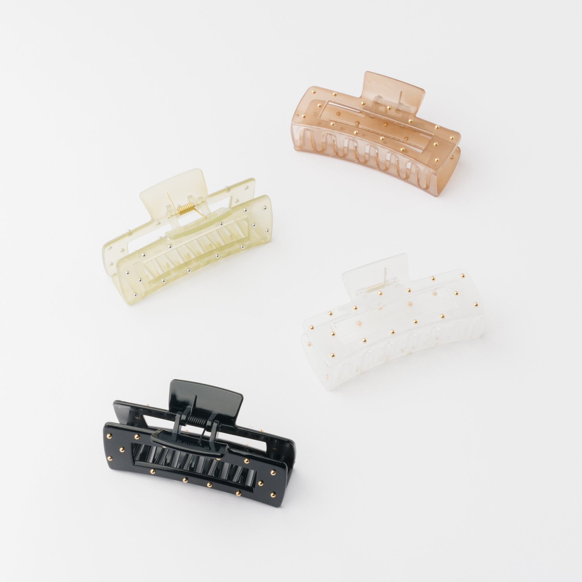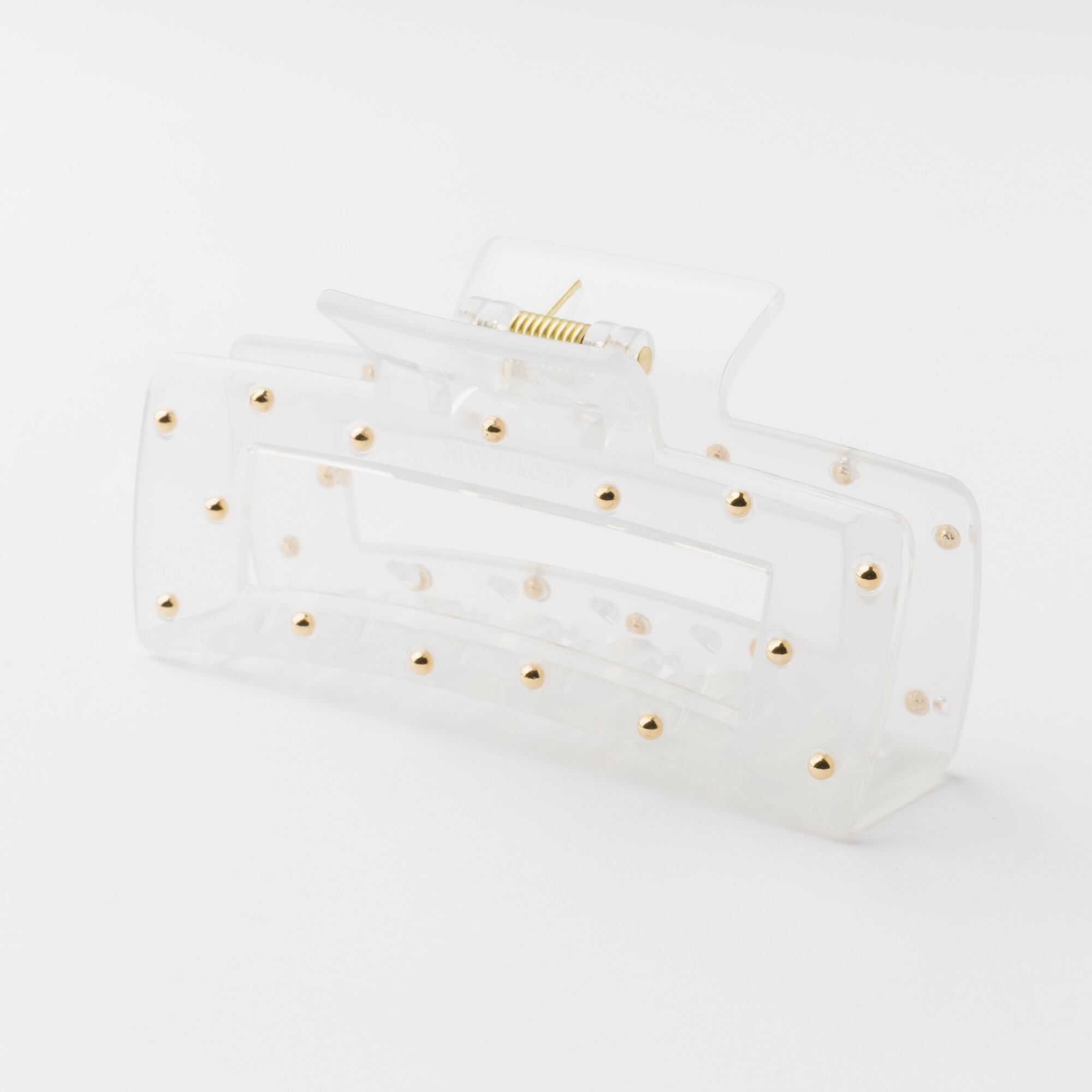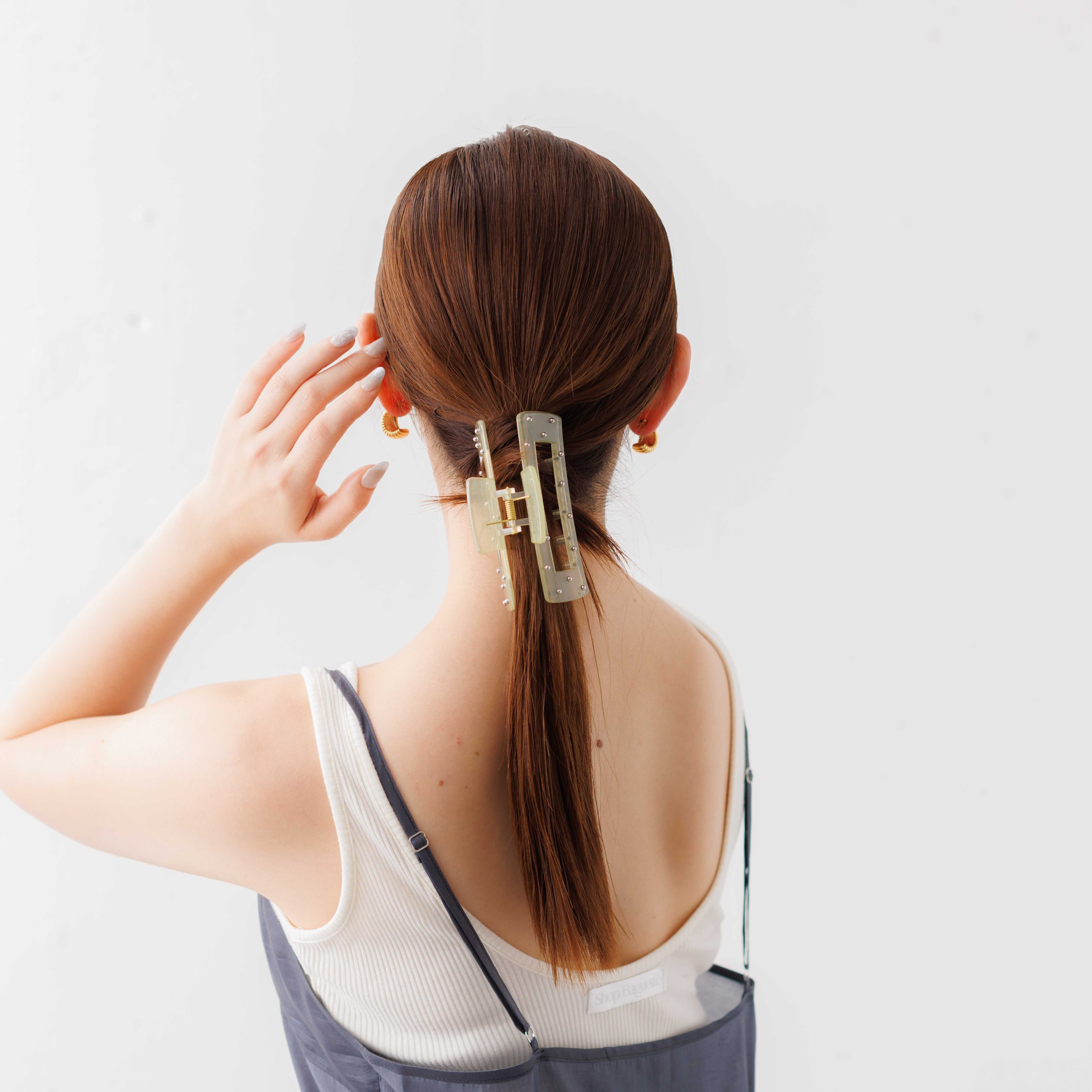メタルボールがさりげなく映える、スクエアデザインのバンスクリップ。