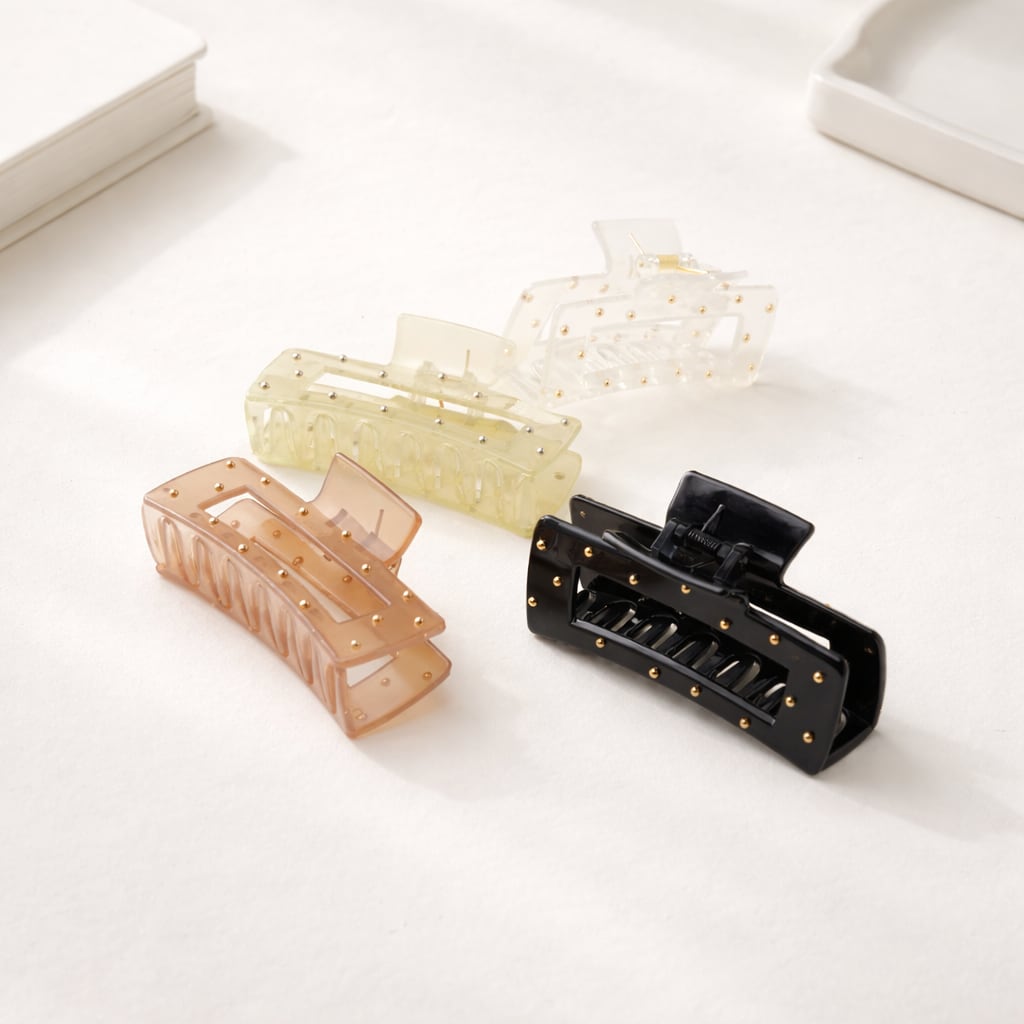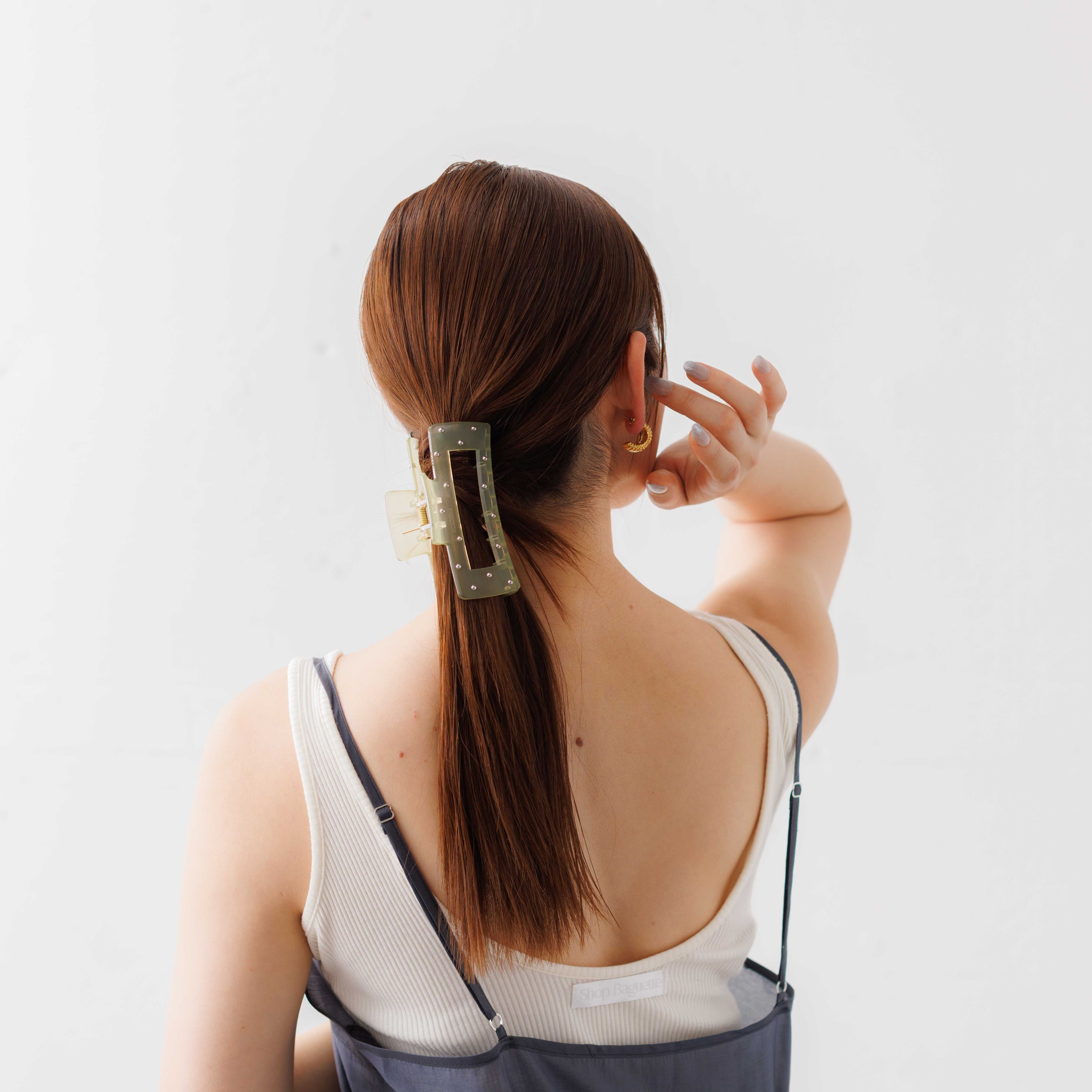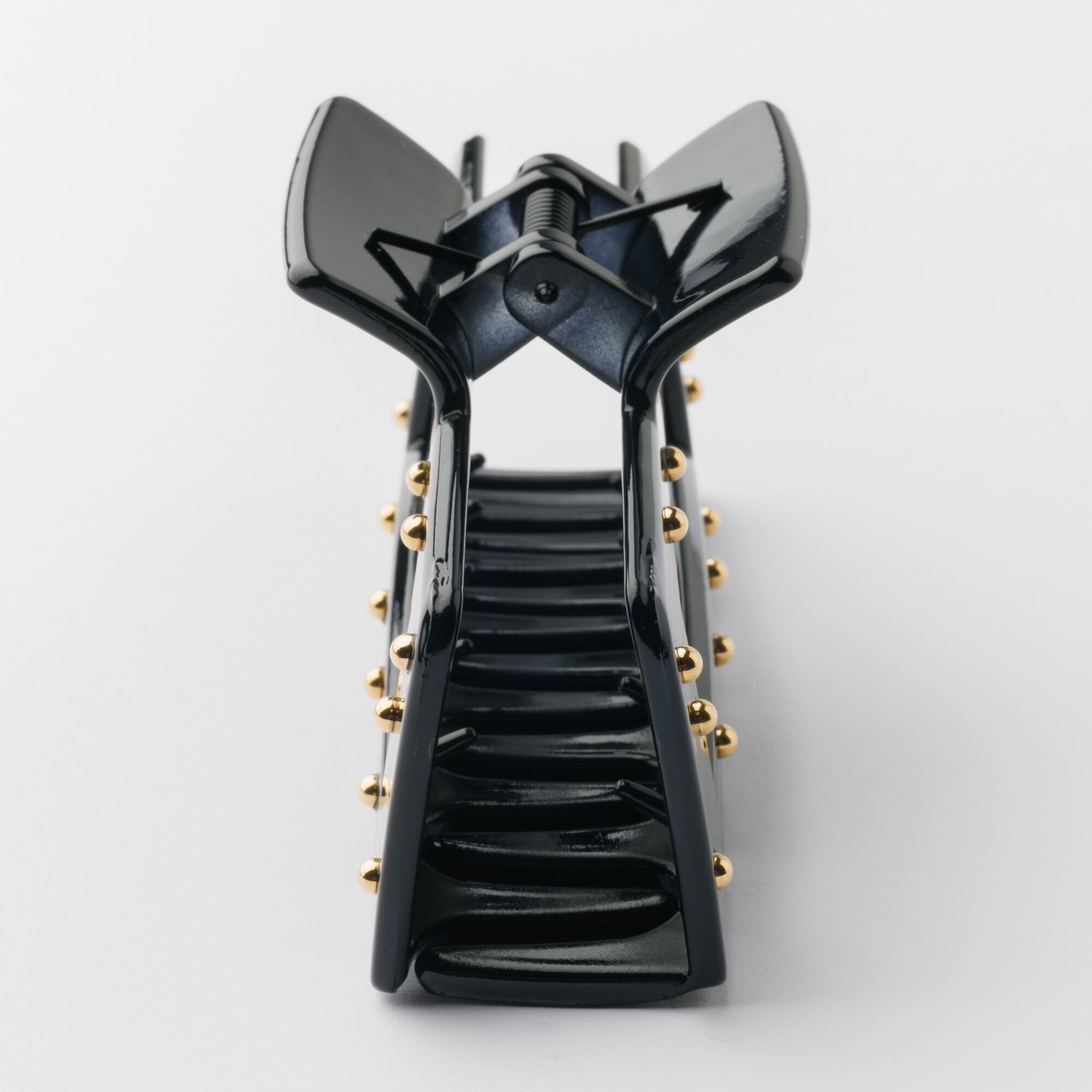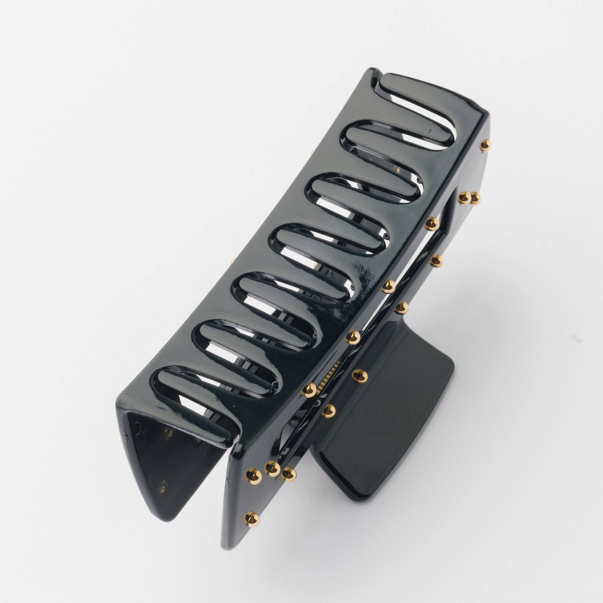 メタルボールがさりげなく映える、スクエアデザインのバンスクリップ。