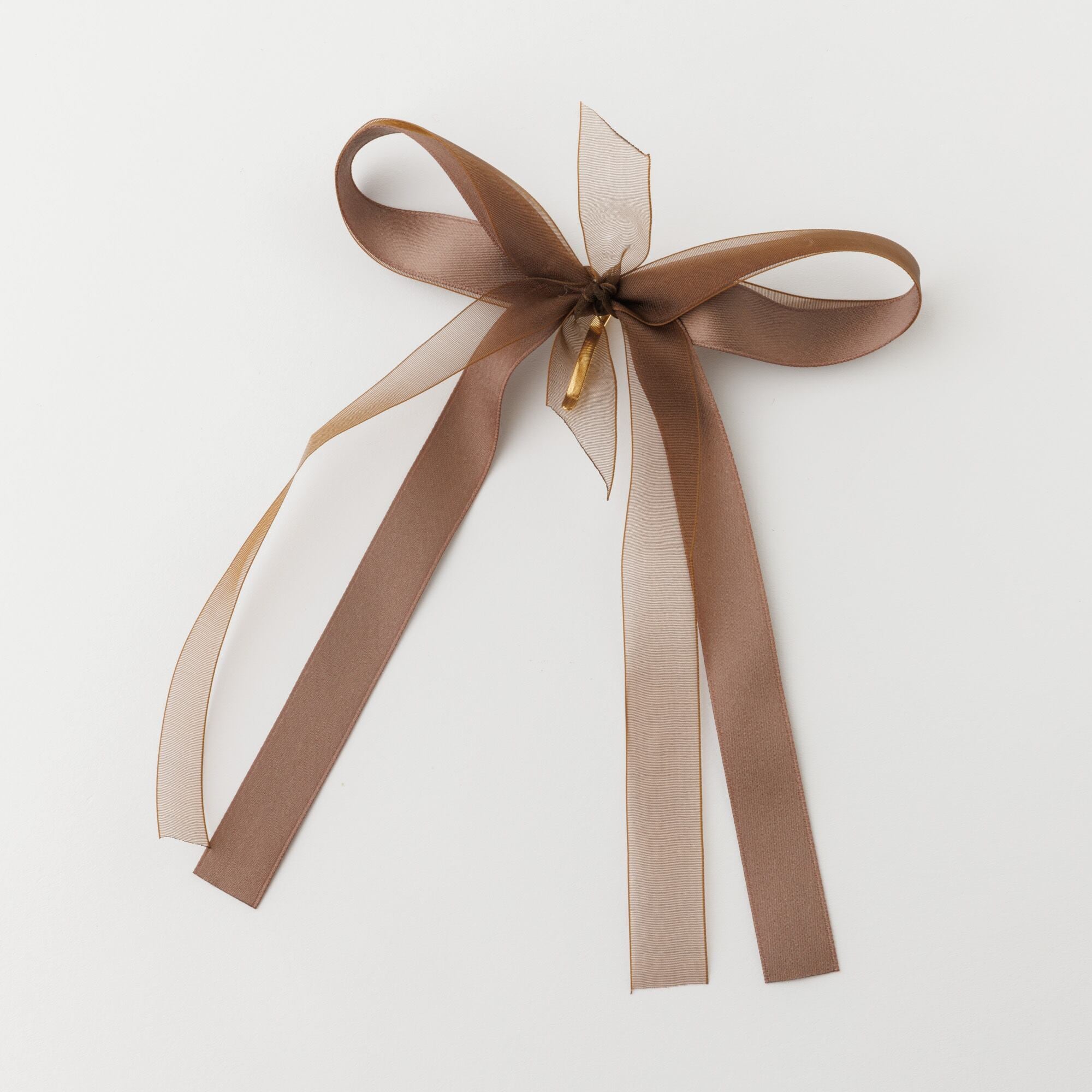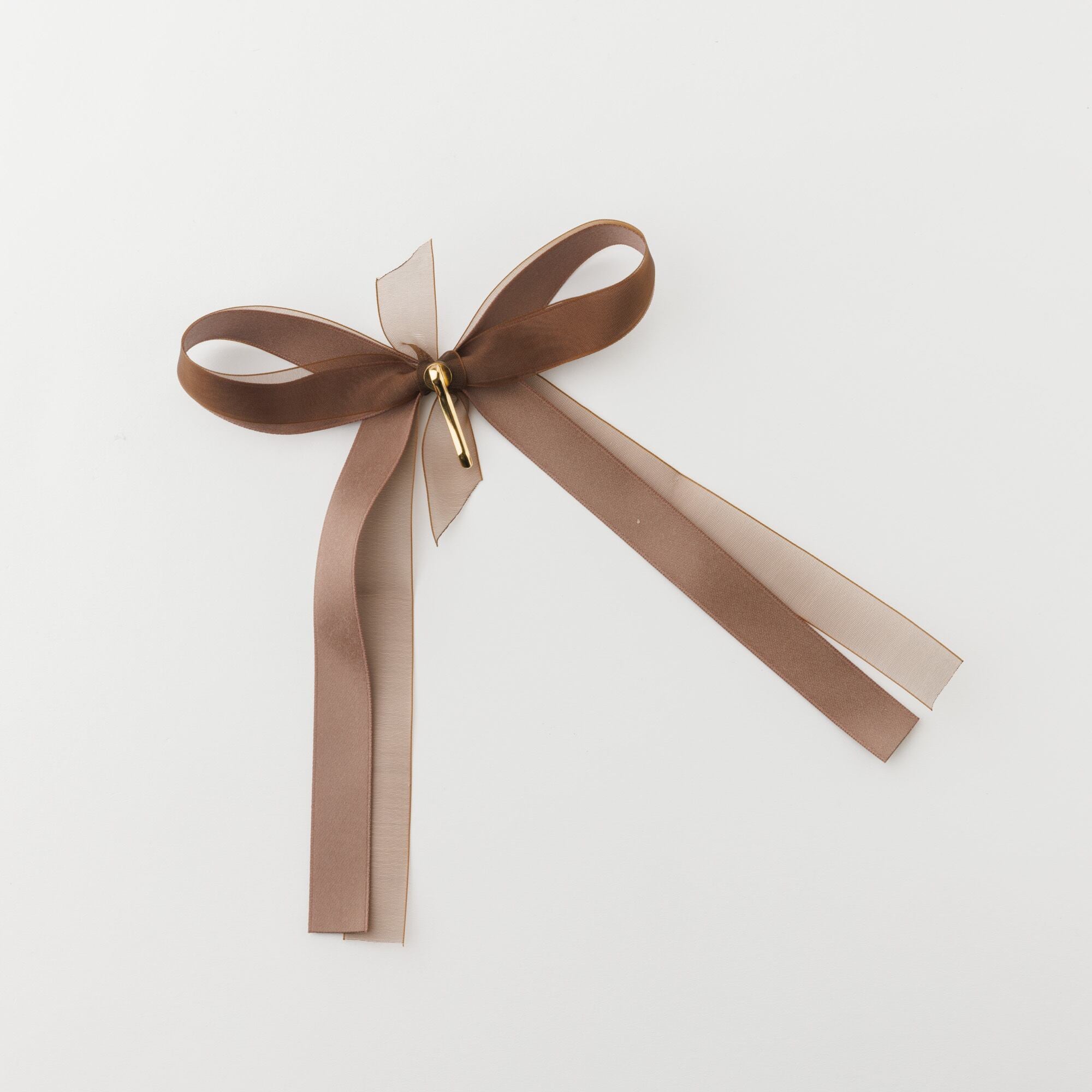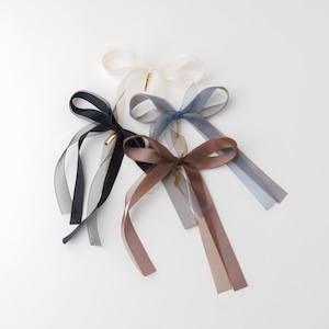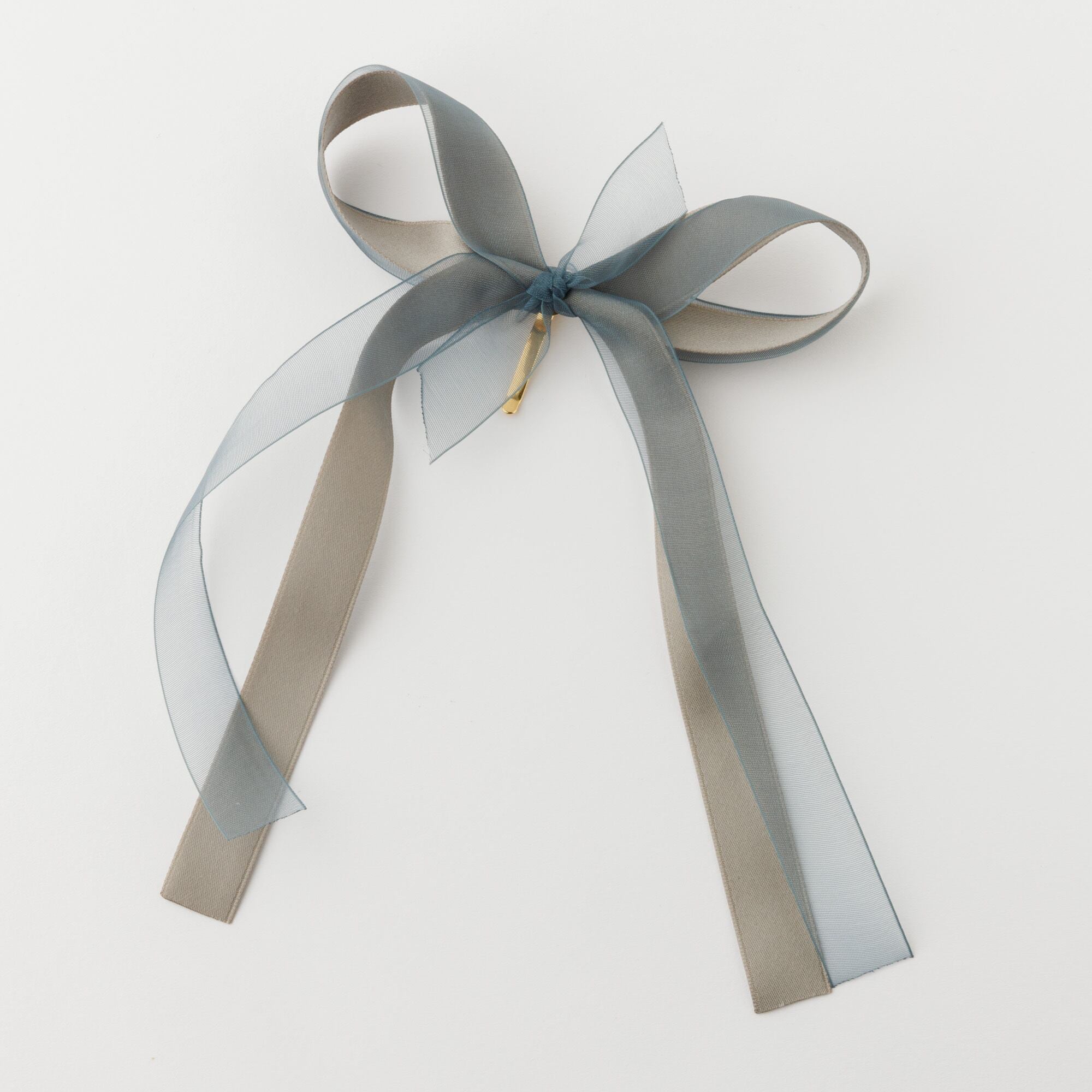 2種類のリボンがふんわり重なり、立体感のある華やかなデザインに。