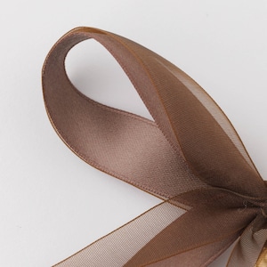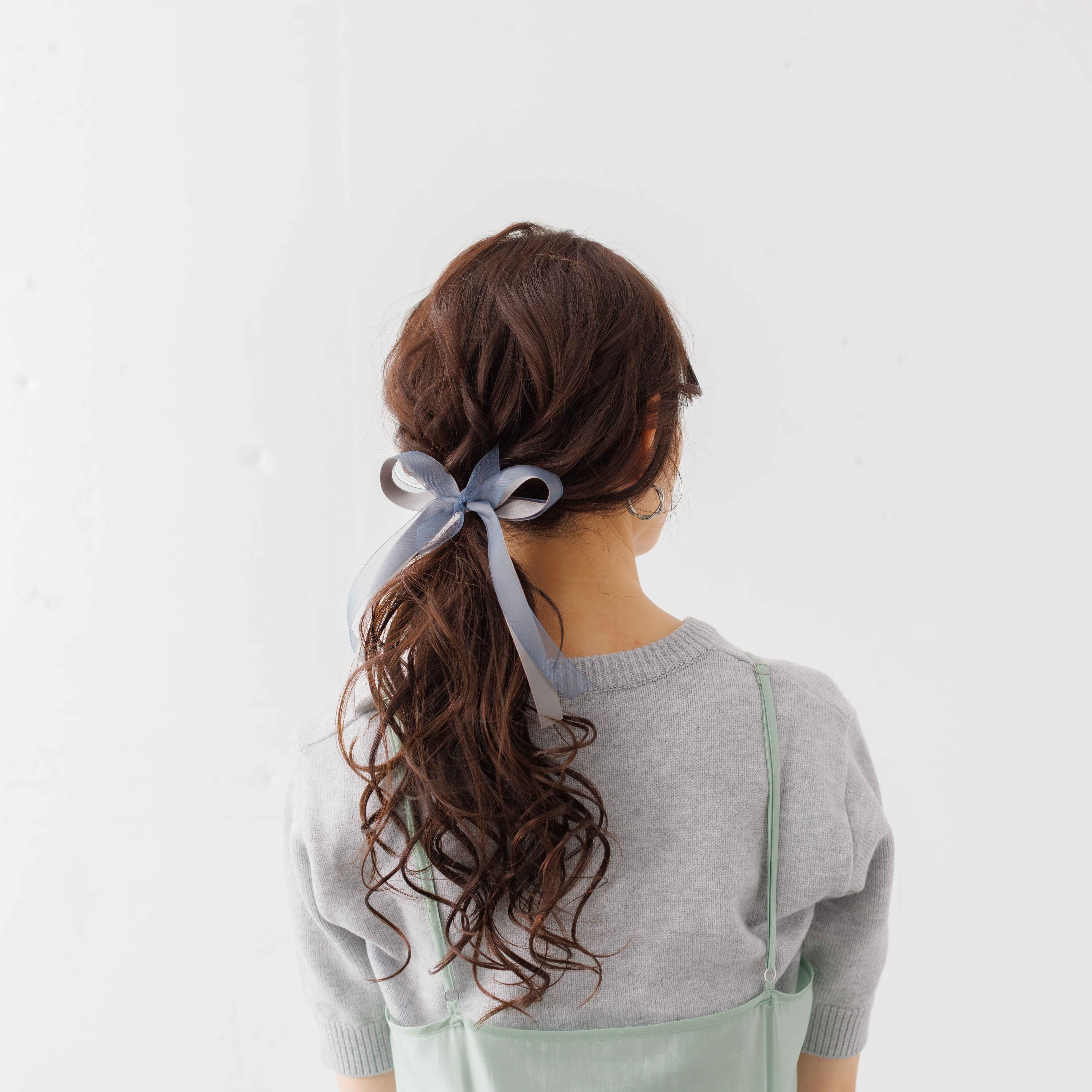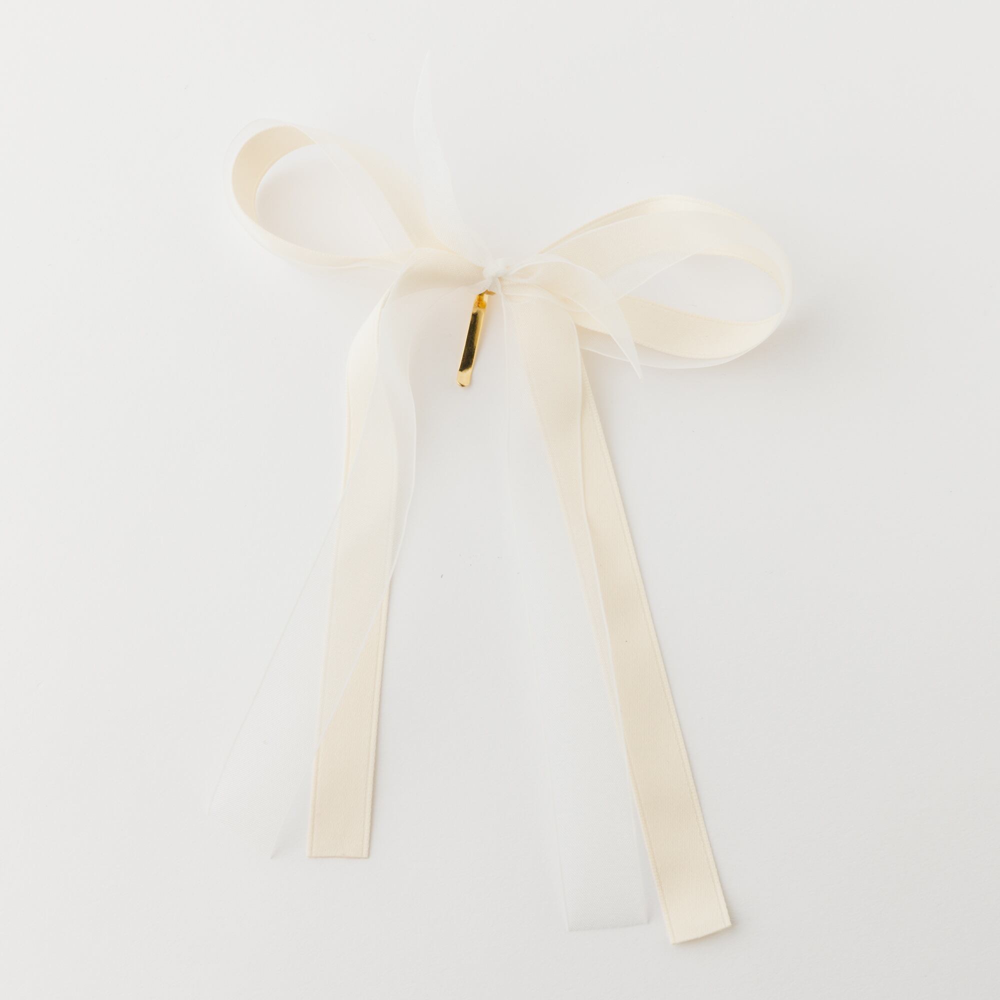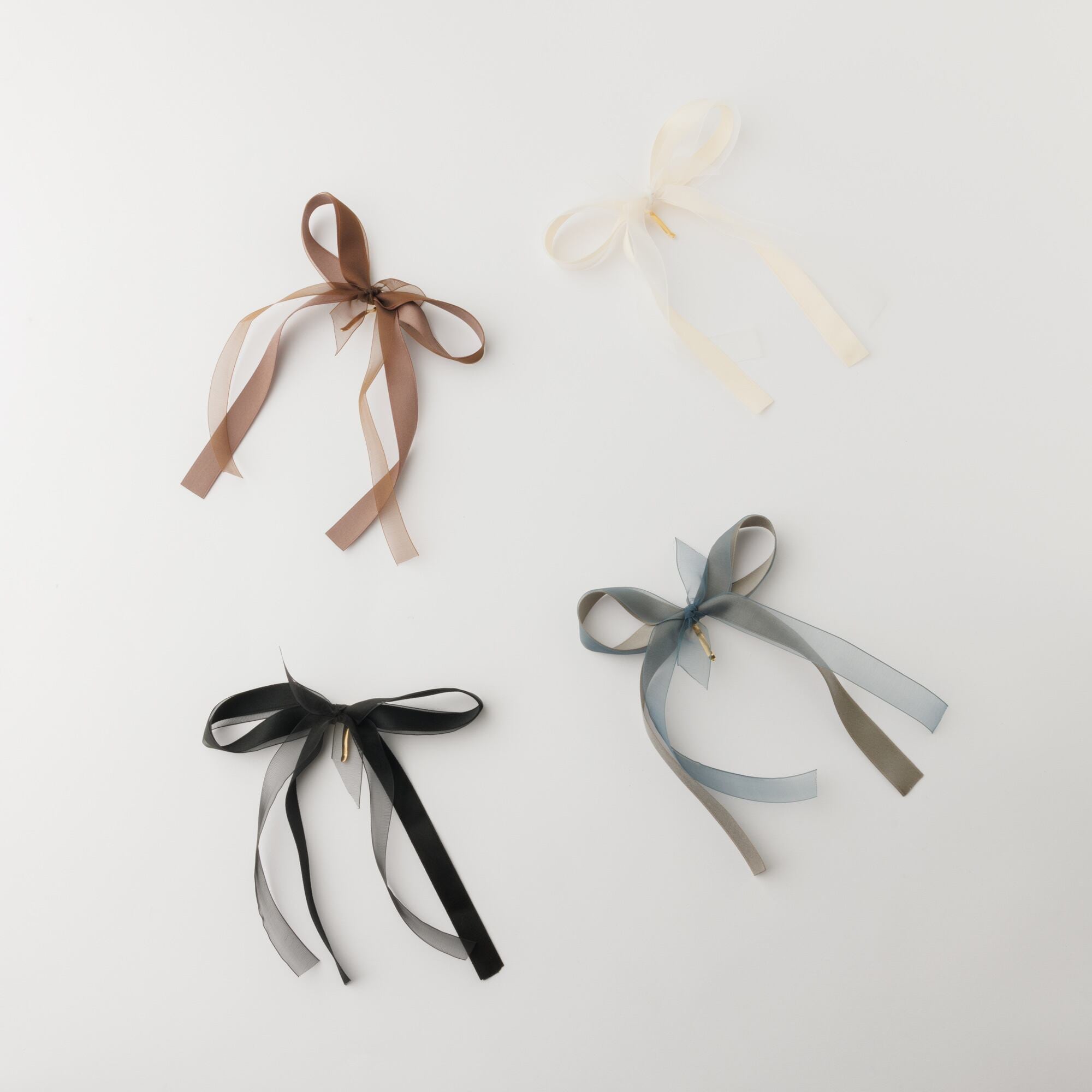 2種類のリボンがふんわり重なり、立体感のある華やかなデザインに。