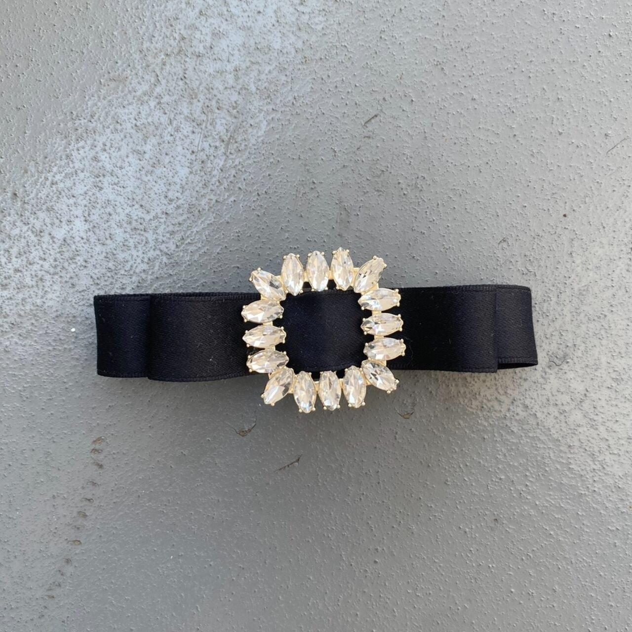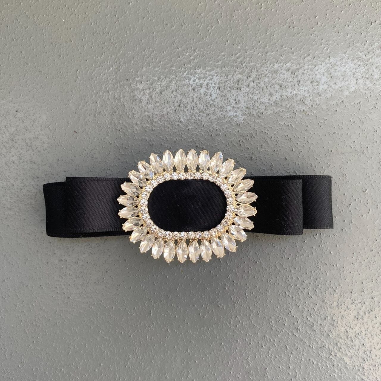 ビジューがきらりと映える、クラシックなリボンバレッタ。