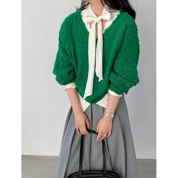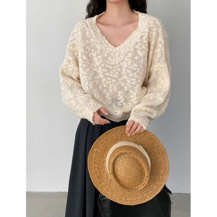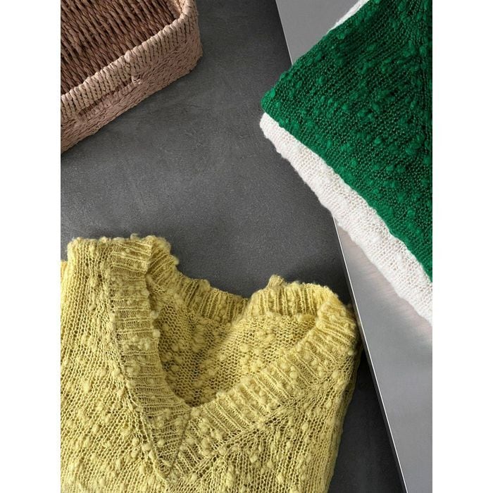 textured v-neck knit top 14219