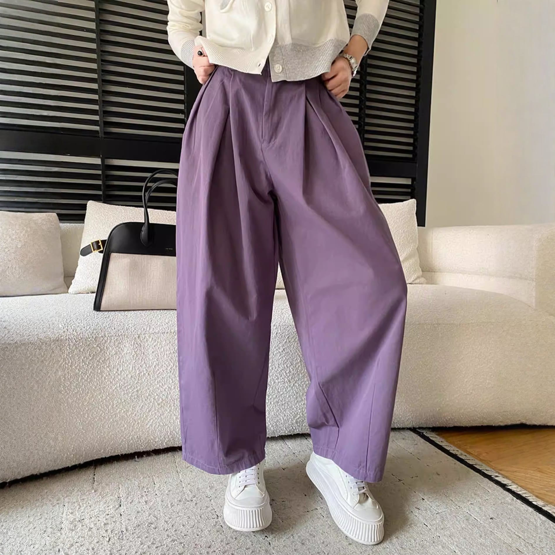フロントに深めのタックが入ったワイドパンツ。 トップスをインしてもバランスよく決まる1枚です。 【サイズ】 M ウエスト:62-72cm ヒップ:116cm パンツ丈:97cm 股上:31cm L ウエスト:66-76cm ヒップ:120cm パンツ丈:98cm 股上:32cm XL ウエスト:70-80cm ヒップ:124cm パンツ丈:99cm 股上:33cm ※海外製品につき1-3cm程度誤差がある場合がございます。 【素材】 コットン ポリエステル 【カラー】 オフホワイト パープル ネイビー ■abeilleでは、多数アイテムを取り揃えております。 下記URLよりぜひチェックしてみて下さい♪ https://www.abeille.shop/ ■今週の人気ランキングはこちら♪ https://www.abeille.shop/categories/3518518 ****ご購入前に必ずお読みください**** https://www.abeille.shop/about 【お届けについて】 こちらの商品は海外店舗より直接発送となる為、 ご入金から「10日~3週間前後」で発送致します。 ■注意事項 ・タイミングによっては 商品在庫切れにより 注文キャンセルとさせていただく恐れもございますので、予めご了承くださいませ。 ・こちらは輸入品となります。日本製とは検品基準が異なる為、 新品未使用品でもごくわずかな汚れや ほつれがある場合もございます。 ・仕入れ工場を変えることがあるため、記載サイズと若干異なる場合がございます。 ・商品の色味は、お手持ちのスマートフォンの画面によって実物と若干異なる場合がございます。 ・イメージ違いやサイズ交換等、お客さまご都合による交換、返品は対応出来かねます。 【お支払方法】 ・クレジットカード決済 (VISA/Master/JCB/AMERICAN EXPRESS) ・キャリア決済 (docomo/au/SoftBank/Y!mobile/UQmobile) ・銀行振込 (三井住友銀行) ・コンビニ決済・Pay-easy ・後払い決済 *ーー*ーー*ーー*ーー*ーー*ーー*ーー* 【abeille】Instagram https://www.instagram.com/abeille_closets/