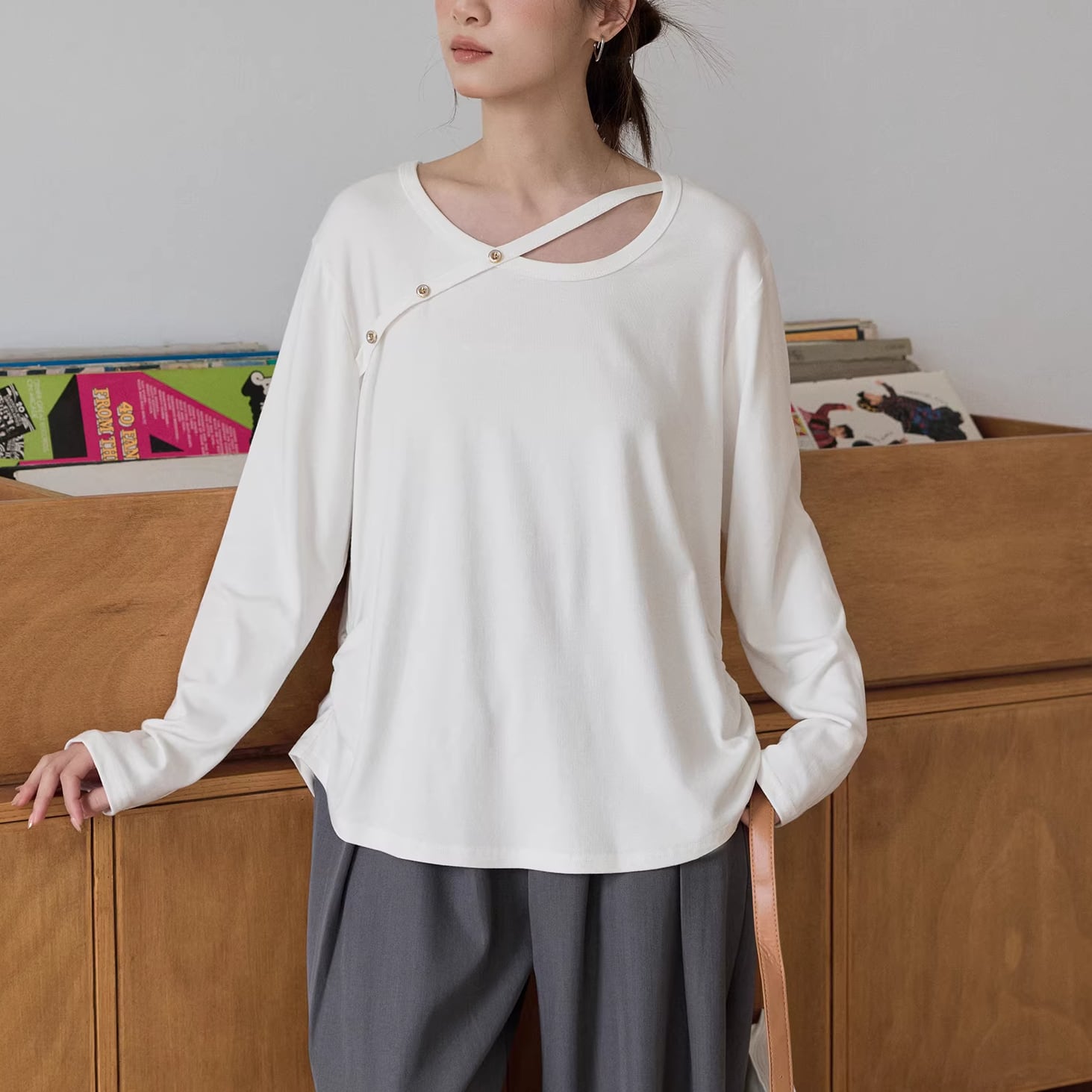 片側のストラップとボタンディテールがポイントのトップス。 抜け感を演出し、パンツにもスカートにも合わせやすい万能アイテムです。 【サイズ】 S 肩幅:42cm 胸囲:106cm 着丈:58cm 袖丈:55cm M 肩幅:43cm 胸囲:108cm 着丈:59cm 袖丈:56cm L 肩幅:44cm 胸囲:110cm 着丈:60cm 袖丈:57cm ※モデル 162cm Mサイズ ※海外製品につき1-3cm程度誤差がある場合がございます。 【素材】 ポリエステル スパンデックス 【カラー】 オフホワイト ブラック ■abeilleでは、多数アイテムを取り揃えております。 下記URLよりぜひチェックしてみて下さい♪ https://www.abeille.shop/ ■今週の人気ランキングはこちら♪ https://www.abeille.shop/categories/3518518 ****ご購入前に必ずお読みください**** https://www.abeille.shop/about 【お届けについて】 こちらの商品は海外店舗より直接発送となる為、 ご入金から「10日~3週間前後」で発送致します。 ■注意事項 ・タイミングによっては 商品在庫切れにより 注文キャンセルとさせていただく恐れもございますので、予めご了承くださいませ。 ・こちらは輸入品となります。日本製とは検品基準が異なる為、 新品未使用品でもごくわずかな汚れや ほつれがある場合もございます。 ・仕入れ工場を変えることがあるため、記載サイズと若干異なる場合がございます。 ・商品の色味は、お手持ちのスマートフォンの画面によって実物と若干異なる場合がございます。 ・イメージ違いやサイズ交換等、お客さまご都合による交換、返品は対応出来かねます。 【お支払方法】 ・クレジットカード決済 (VISA/Master/JCB/AMERICAN EXPRESS) ・キャリア決済 (docomo/au/SoftBank/Y!mobile/UQmobile) ・銀行振込 (三井住友銀行) ・コンビニ決済・Pay-easy ・後払い決済 *ーー*ーー*ーー*ーー*ーー*ーー*ーー* 【abeille】Instagram https://www.instagram.com/abeille_closets/