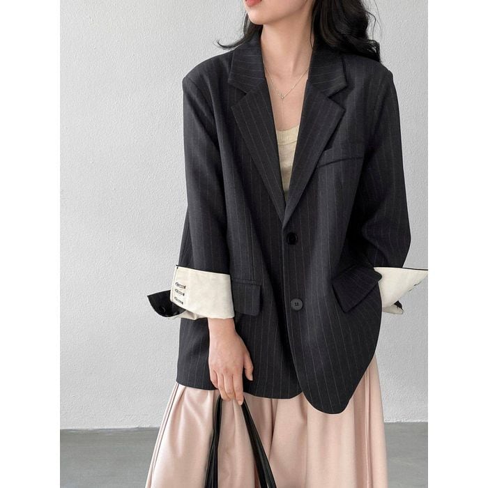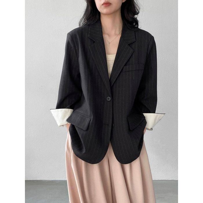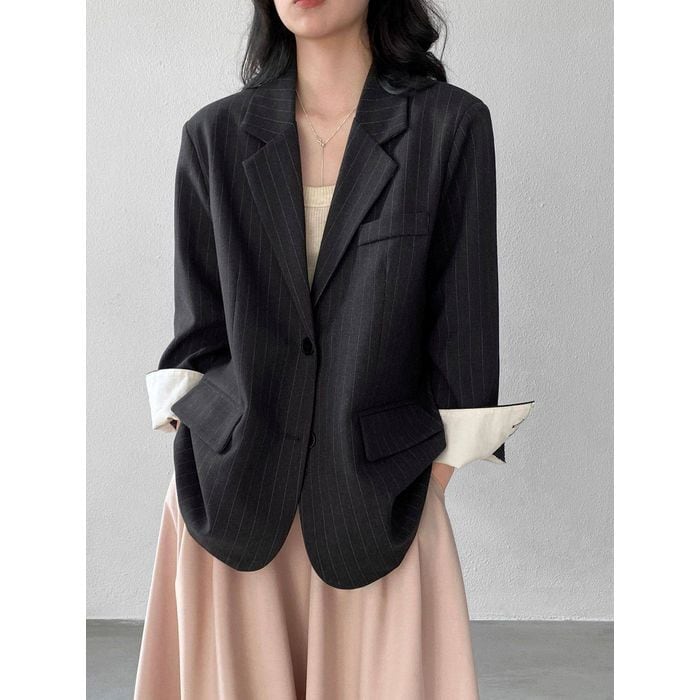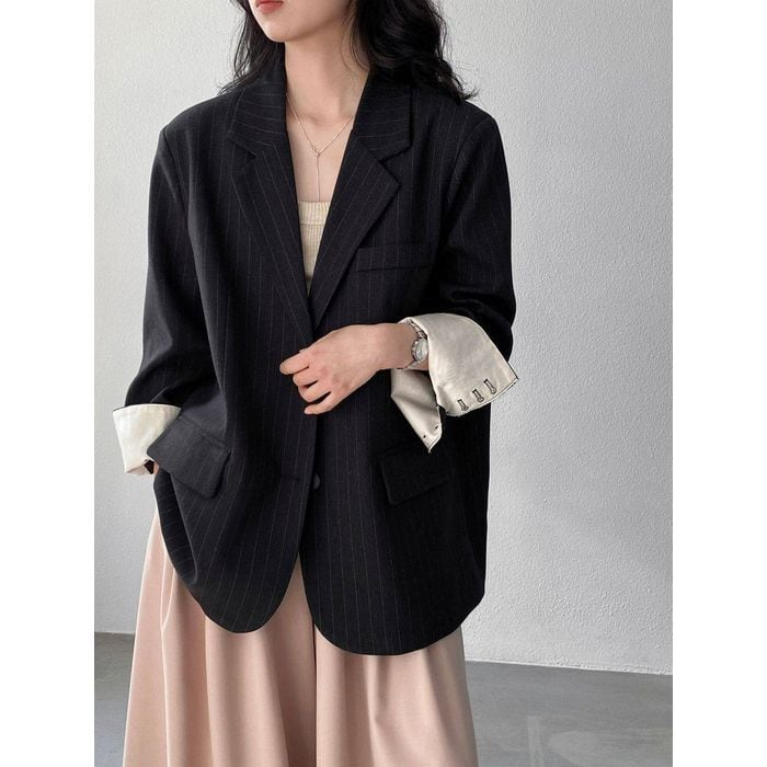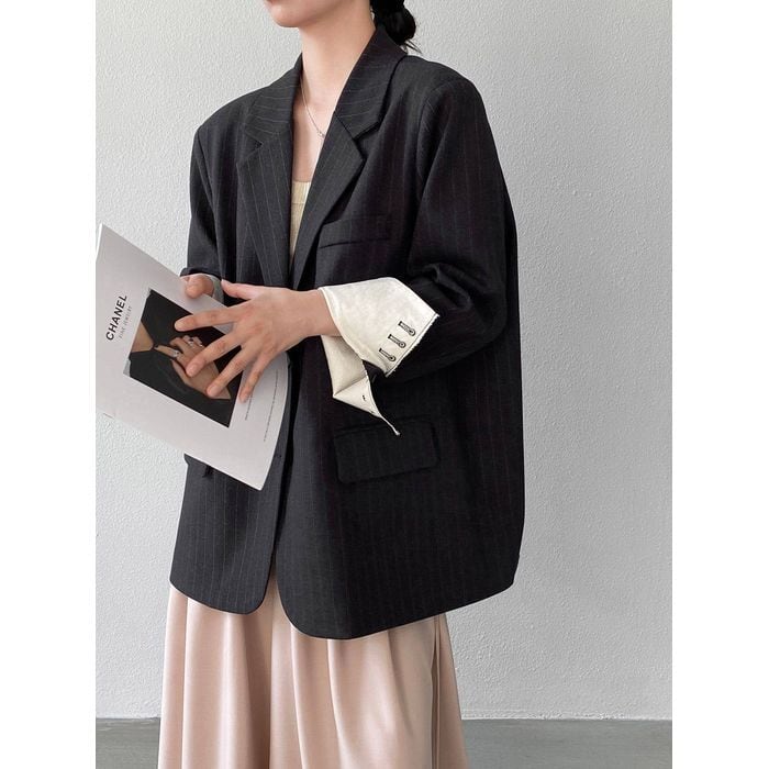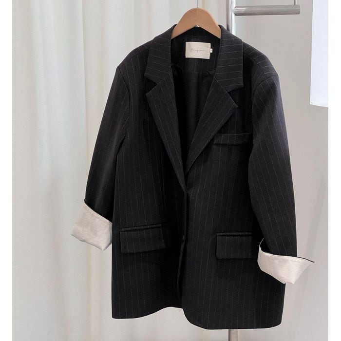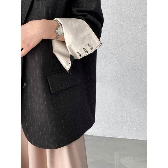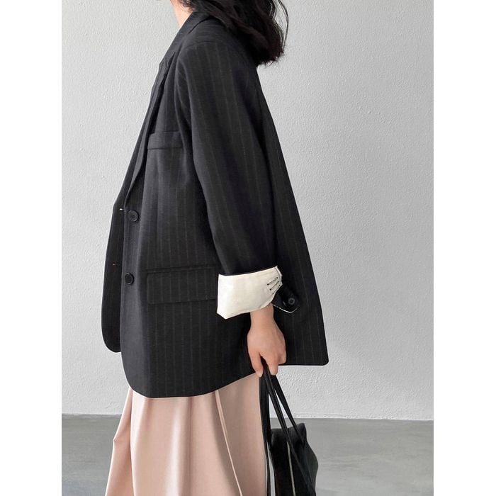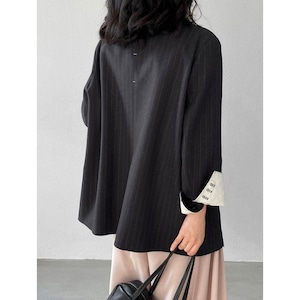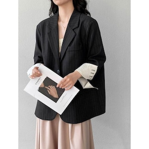 細いストライプが魅力のテーラードジャケット。